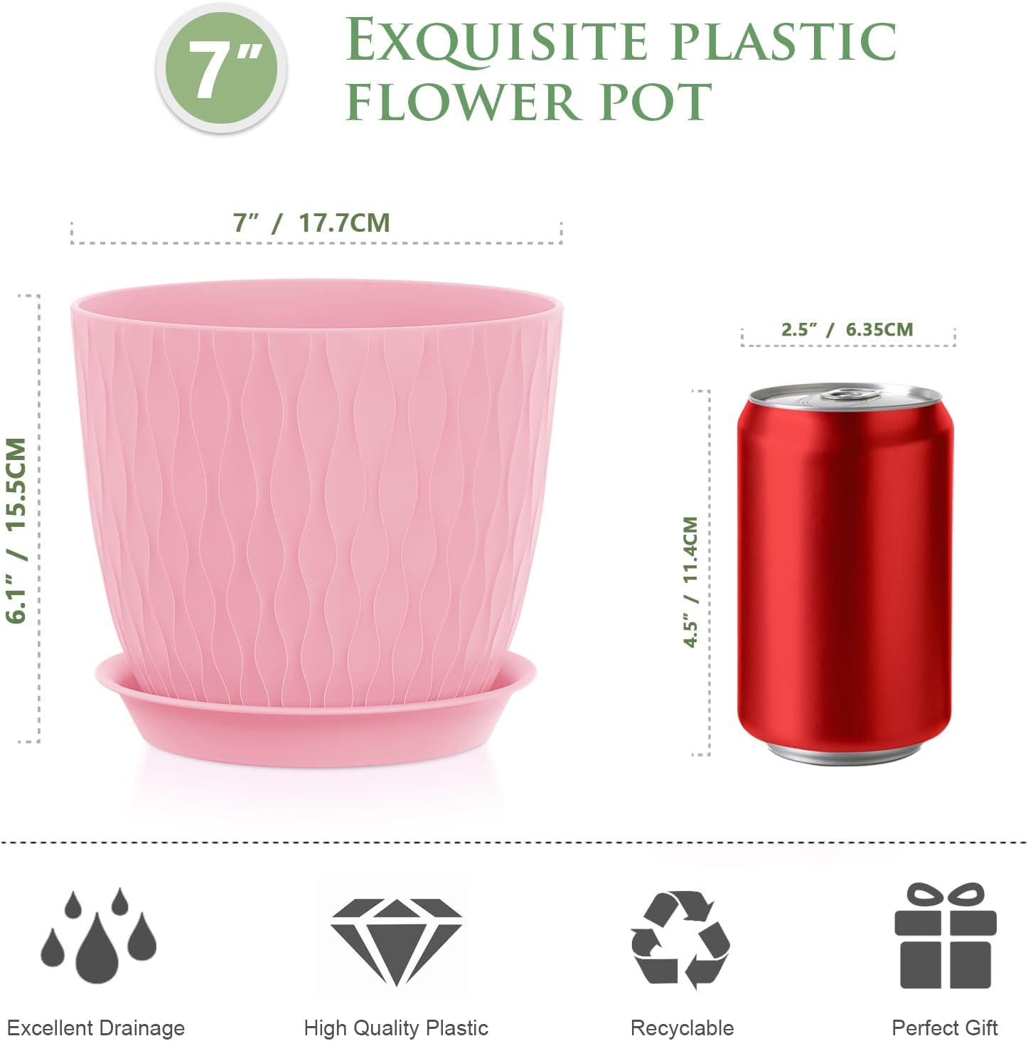 - Special Feature : Drainage Hole, Lightweight, Water Ripple Texture