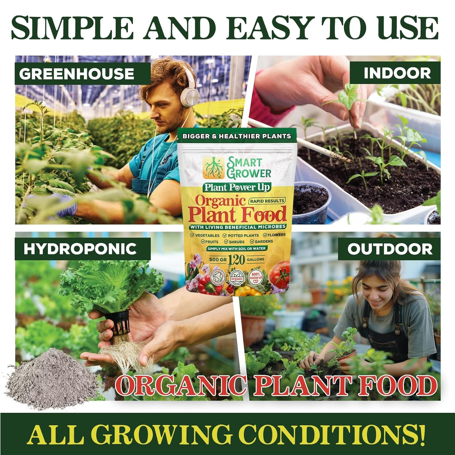 - GUARANTEED RESULTS: Experience the difference with Smart Grower Plant Power Up Organic Fertilizer. Whether you need indoor plant food, garden plant fertilizer for indoor potted plants, or a reliable house plant fertilizer, our product delivers outstanding results. Embrace the power of organic plant food and watch your garden flourish with this exceptional plant food for both outdoor and indoor use.