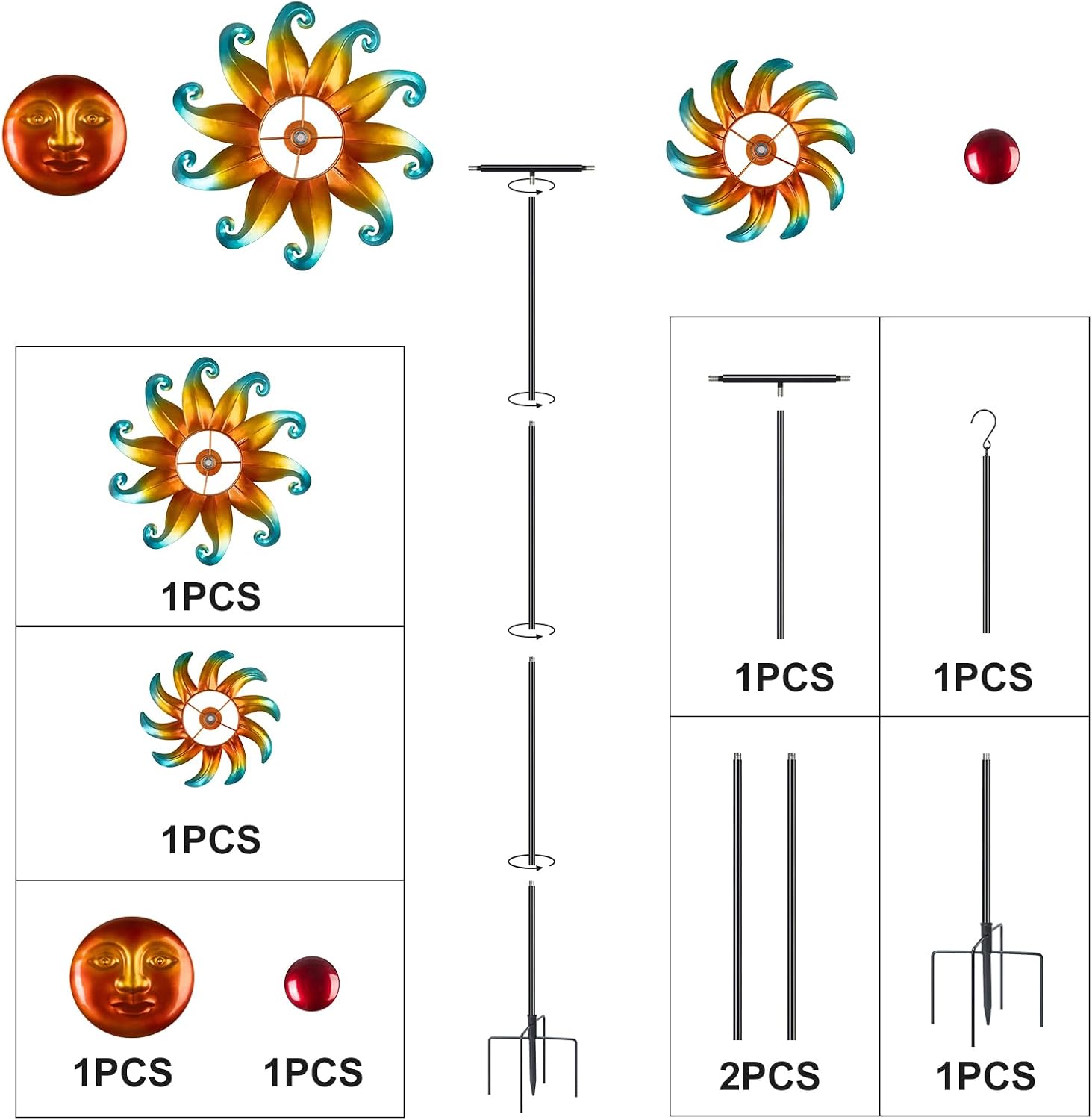 - Unique Design: Sun face wind spinner design with double "sunlight" blades. As it spins with the breeze, spinner not only adds a touch of elegance to your patio, lawn & garden but also fosters a soothing atmosphere, making it perfect for relaxing.