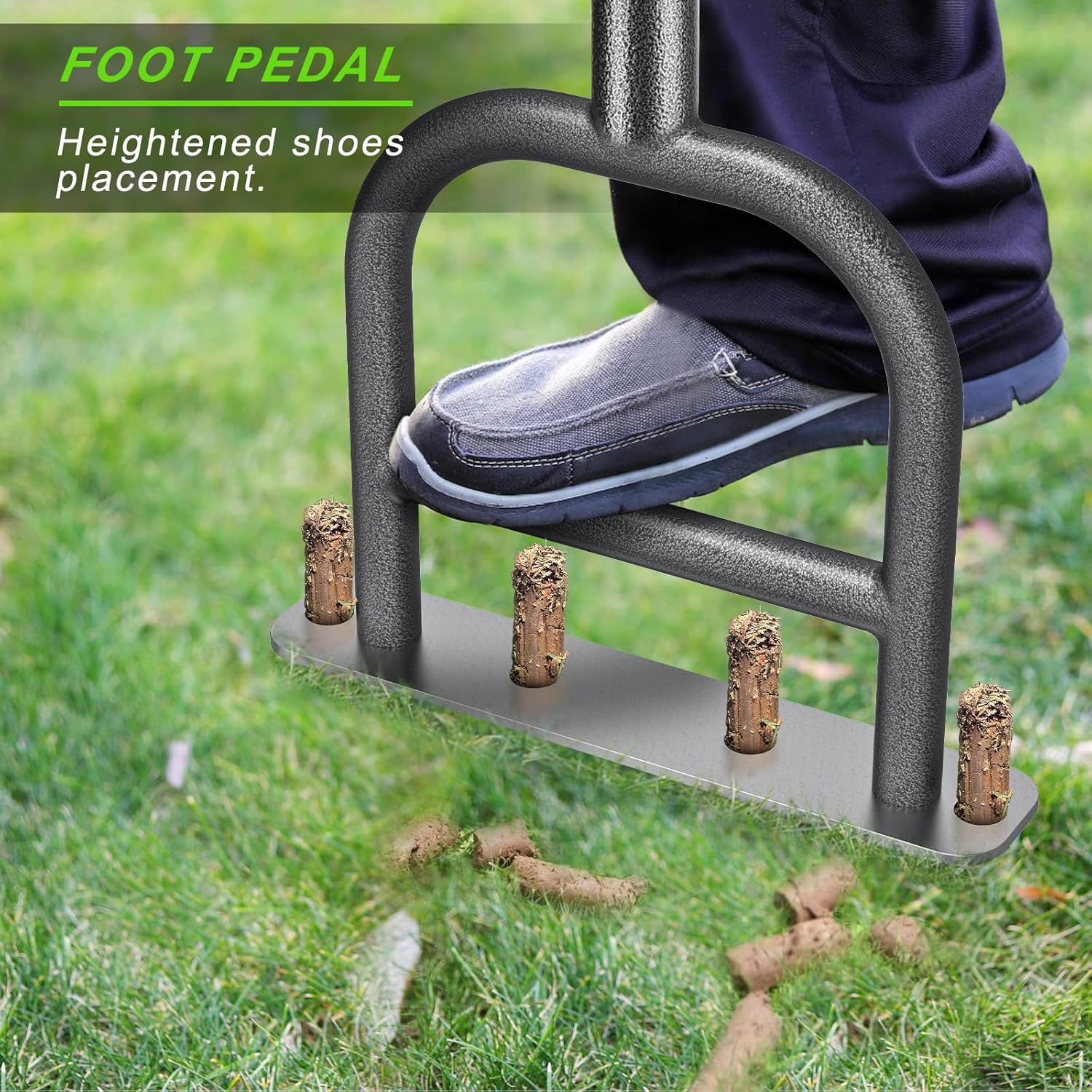 - Comfortable and Convenient: Experience comfort and convenience with this lawn coring aerator featuring a soft rubber handle that prevents hand fatigue or blistering while providing comfort during use. An added foot bar also prevents interference from shoes when ejecting cores.