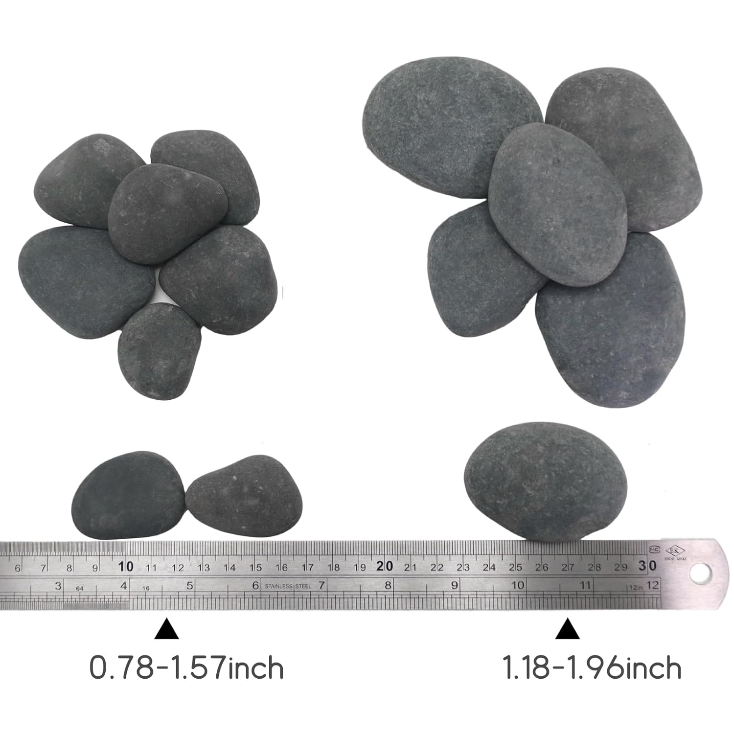 - 【Size & Color】 The size of Lechloris smooth beach pebbles ranges from 0.8” to 1.5”. Since they are natural so the shape and color of rocks are unique. The color of this river rock may include a variety of different shades of Rain Forest Mixed Colors/ Black.