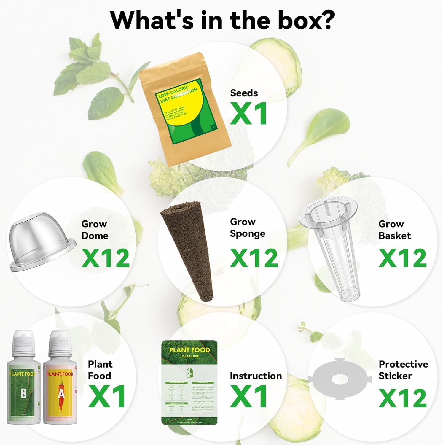 - Everything Your Need: inbloom salad seed kit not only includs four different seeds, but also includes 12 grow baskets, 12 sponges, 12 domes, 12 protective stickers, and A&B plant food. Whether you're a garden starter or an experienced grower, we are committed to making growing simple and fun, so that you can enjoy the fun and harvest of growing
