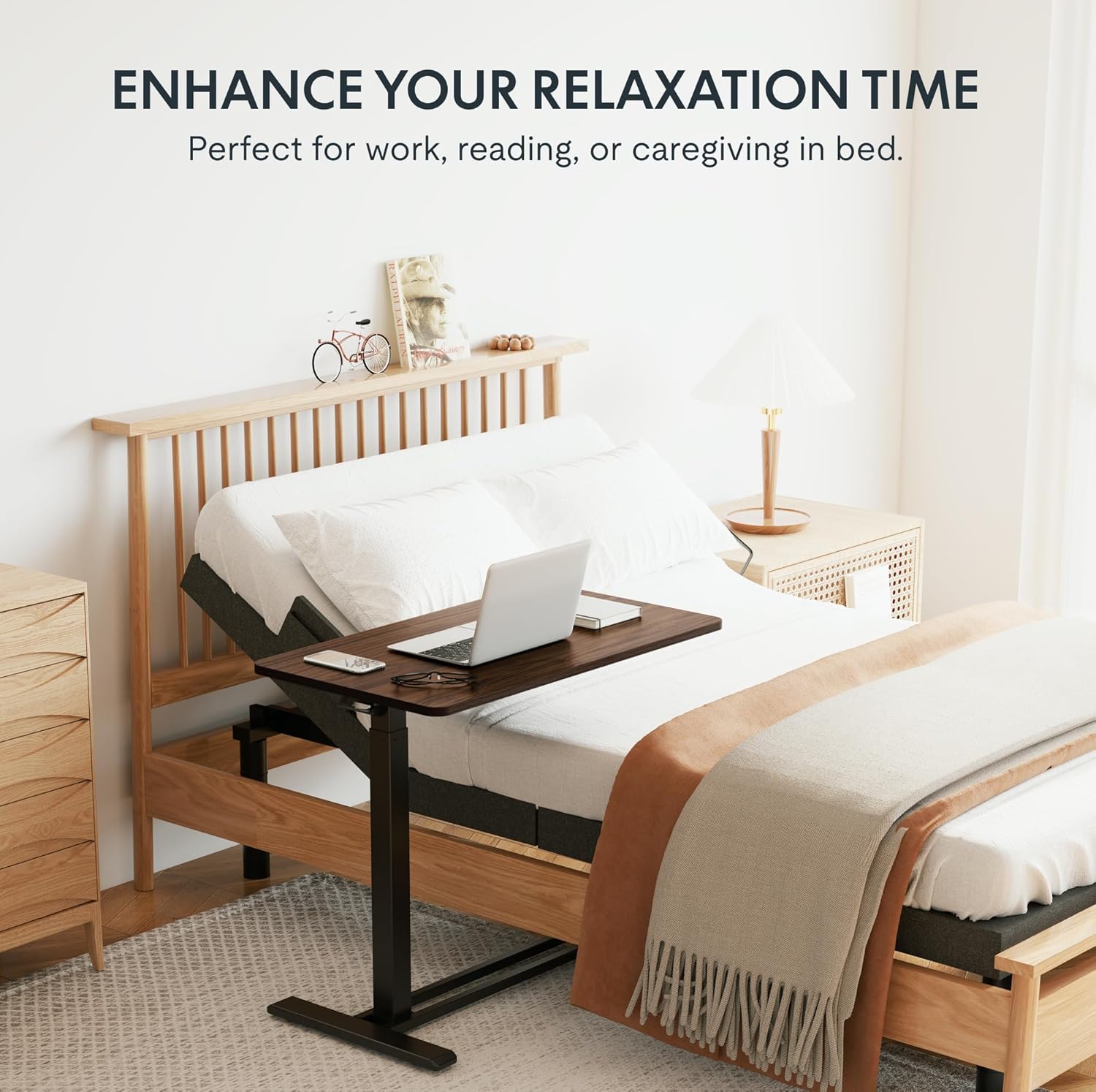 - 360° Smooth-Glide Mobility for Multi-Room Use:Four swivel wheels ensure seamless movement across floors, effortlessly rolling under beds, couches, or recliners as a space-saving over couch table. Transition from a hospital bed table to a living room TV tray or mobile end table with zero friction, ideal for quick room-to-room adjustments.