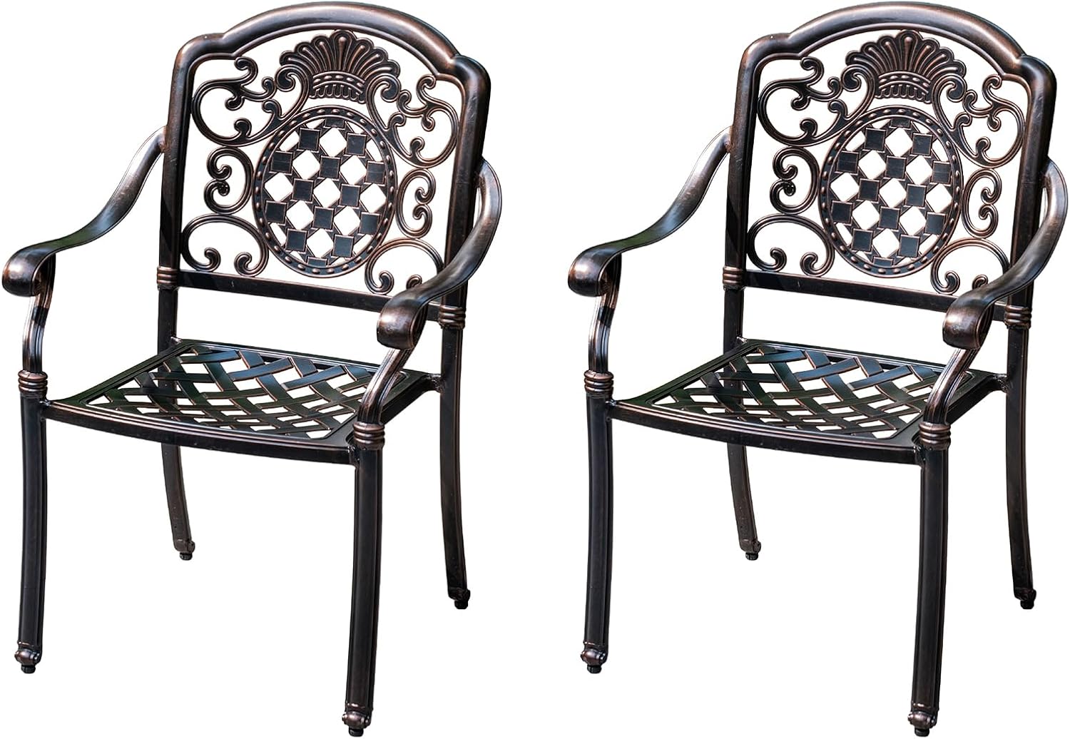 Outdoor Dining Chair Cast Aluminum Patio Chairs Set of 2 All-Weather Patio Dining Chair with Adjustable Feet for Backyard Garden (JL Chair)
