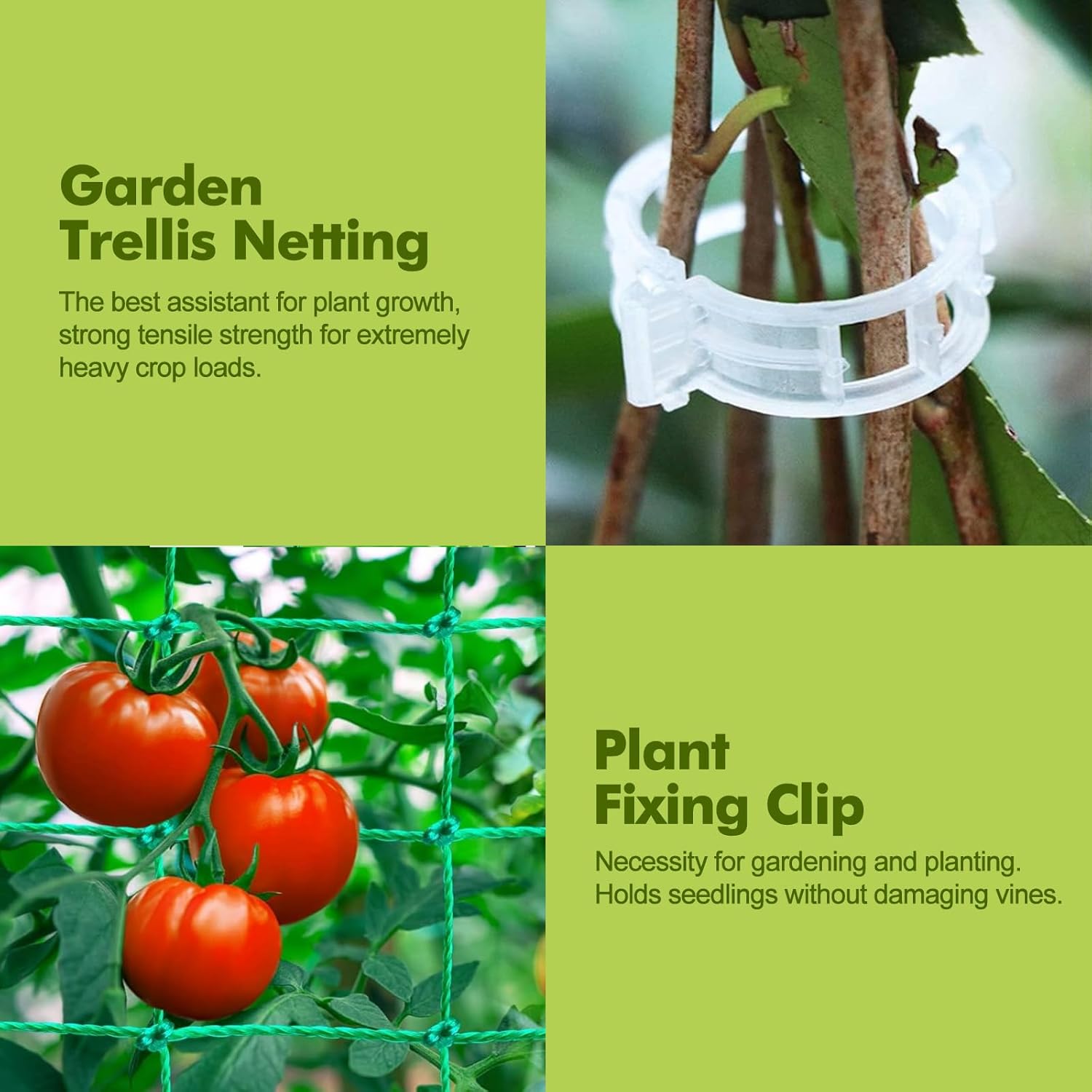 - Weather-Resistant Material: The cucumber trellis is made of durable plastic-coated steel, which is rustproof and waterproof; The sturdy nylon netting and plant fixing clips ensure strong support for climbing plants