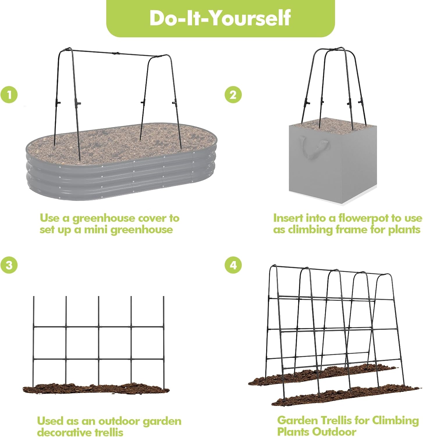 - Versatile Configuration: 5.25ft x 5.25ft length and height can be freely adjusted, making this more than just a vegetable trellis; It can be DIYed into a small greenhouse or a rose trellis, allowing you to customize it to your needs
