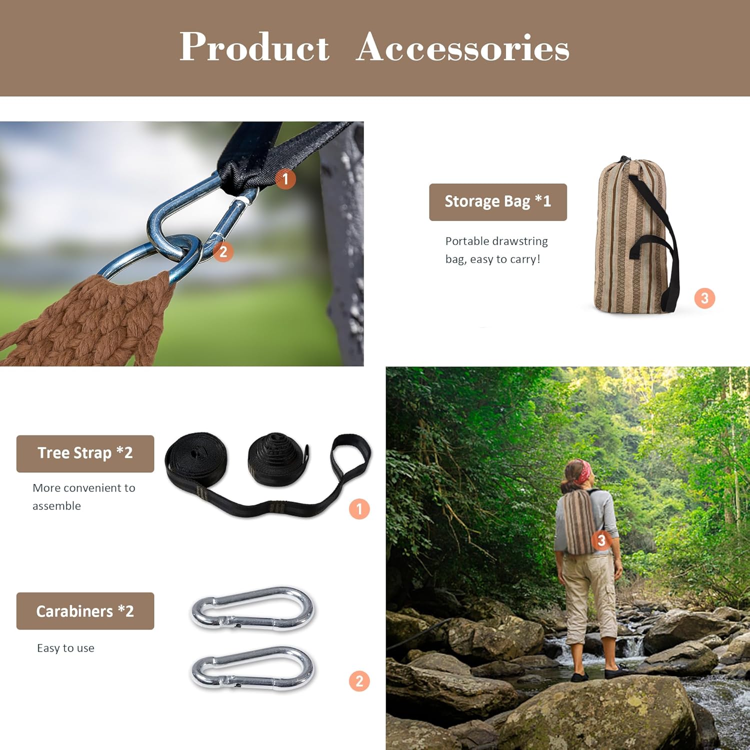 - Portable & Easy to Use: The new splicing spreader bar could be knocked down within minutes, and it comes with a drawstring bag, which makes the outdoor hammock portable. The two person hammock will be more convenient to assemble thanks to its hanging kit (2 pcs of 9.84 feet tree straps and 2 pcs of carabiners). Enjoy the relaxing swing with your significant one at beachside, patio, backyard, balcony and more