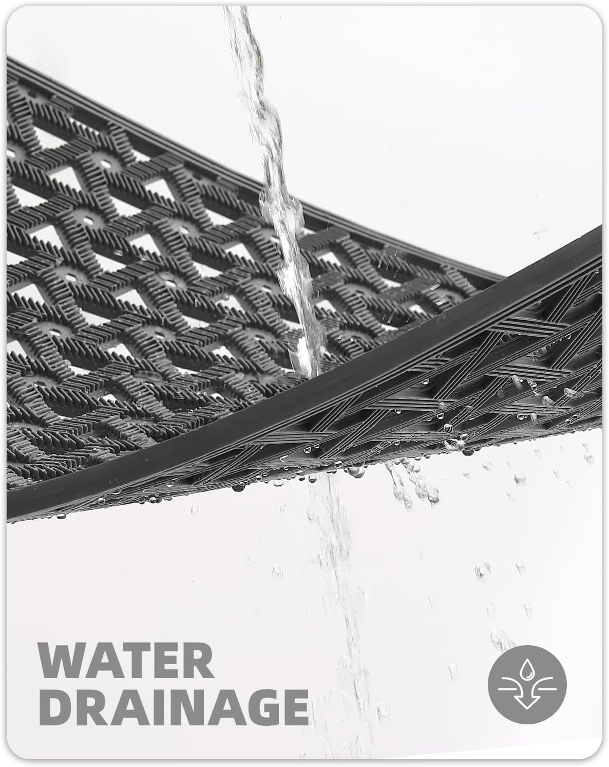 - CAPTURE DIRT & MOISTURE: Our front door mat is designed with deep grooves and a beveled rubber border, creating a powerful barrier against dirt, mud, debris, and moisture; The innovative retention dam ensures that all unwanted elements are captured and contained, so your floors stay clean and dry