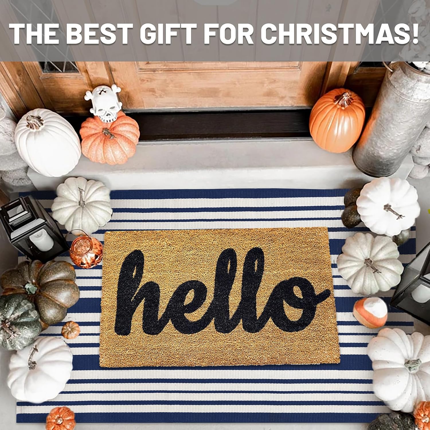 - Easy to Clean: This navy and white striped rug is simple to maintain with machine wash or vacuuming to remove dirt. The rug is sturdy and can be tumble dried on low. Keep your door rug fresh and clean with minimal effort. NOTE: Cotton rugs normally shrink slightly after washing