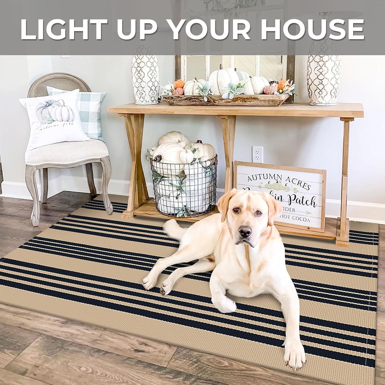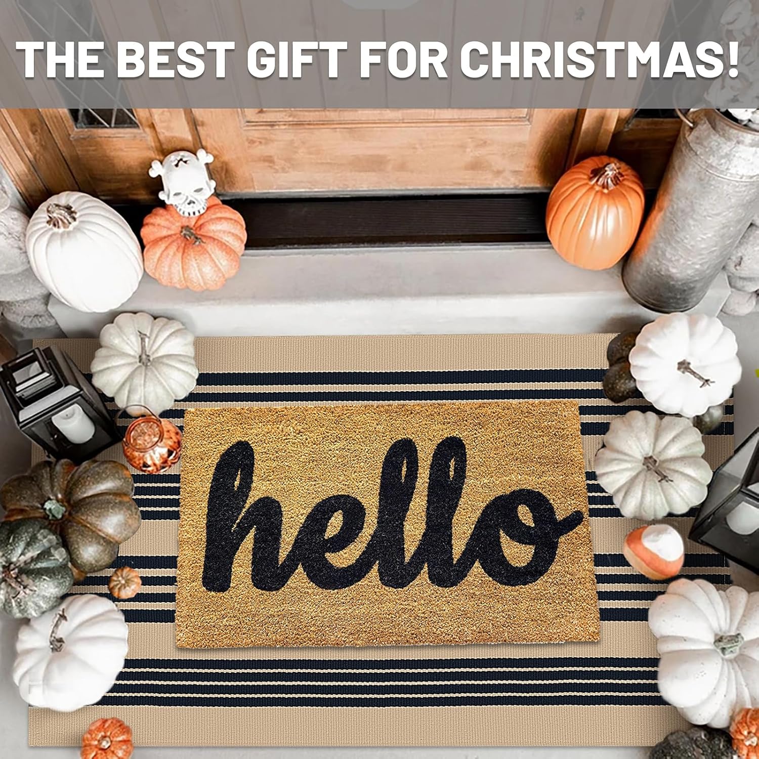 - Classic Pattern Design: Enhance your home decor with this striped indoor outdoor rug. The chic design is ideal for decorating your front porch, entryway, or living room. It also makes a thoughtful gift for Christmas, Halloween, or Thanksgiving