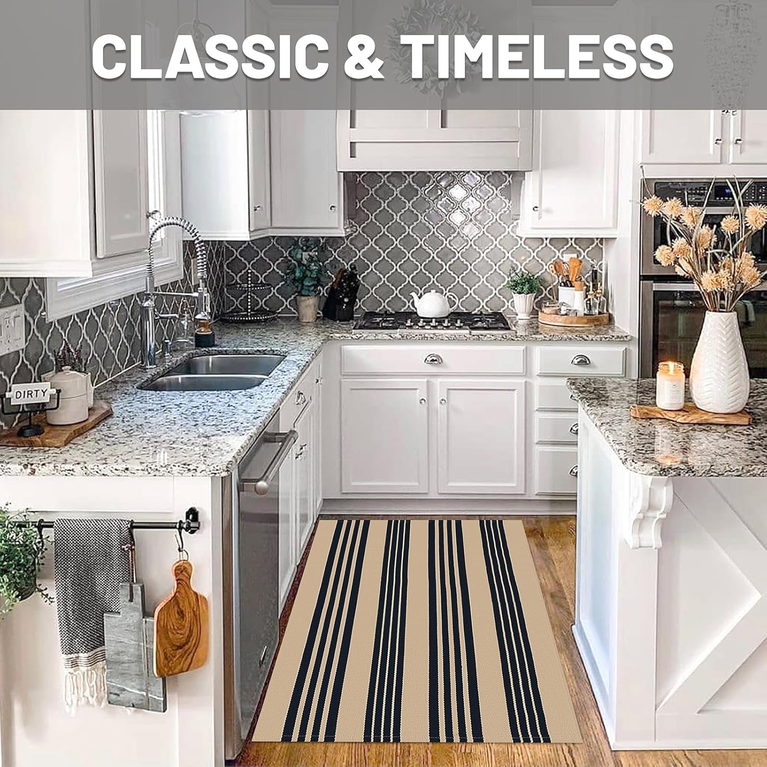 - Easy to Clean: This tan and black striped rug is simple to maintain with machine wash or vacuuming to remove dirt. The rug is sturdy and can be tumble dried on low. Keep your door rug fresh and clean with minimal effort. NOTE: Cotton rugs normally shrink slightly after washing