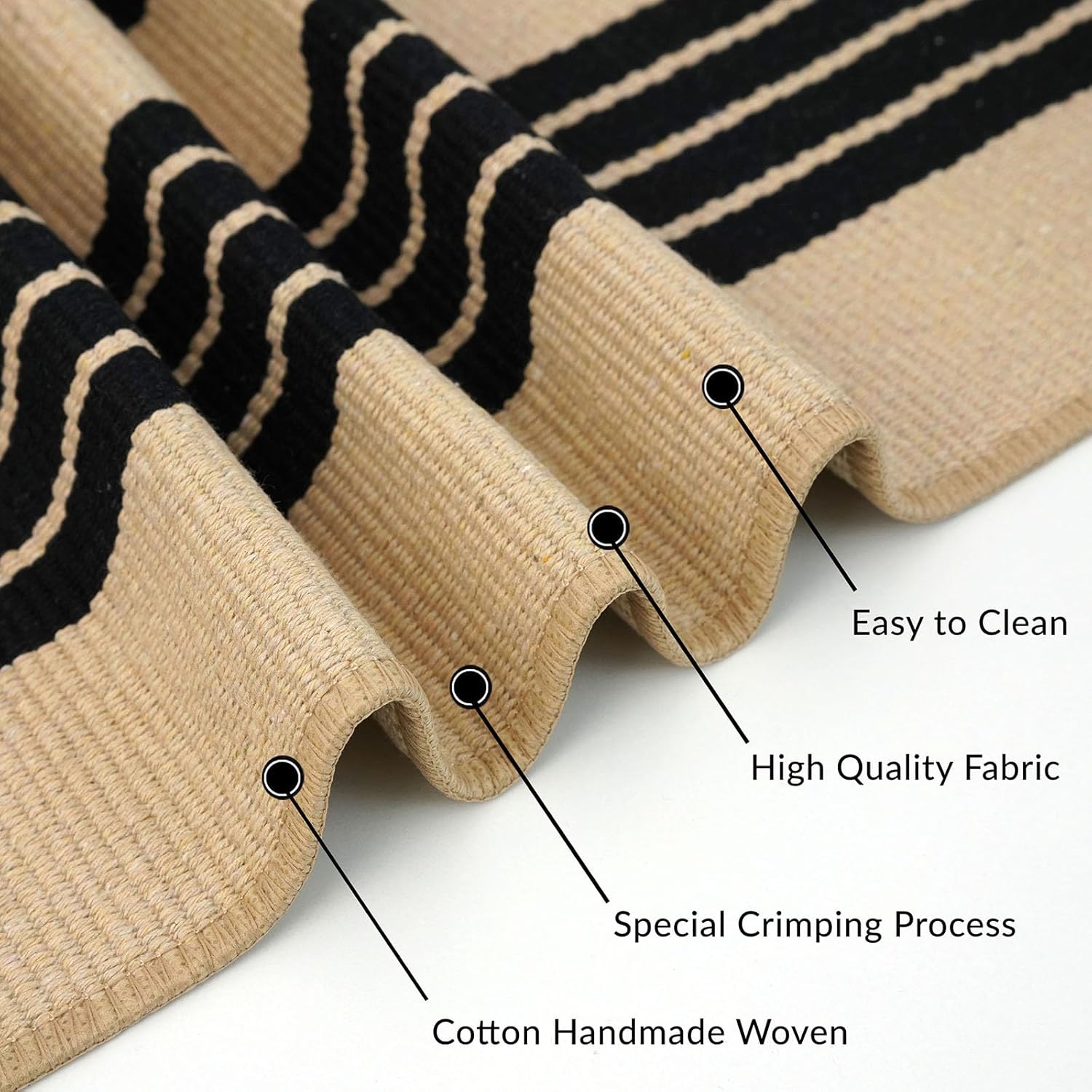 - Easy to Clean: This tan and black striped rug is simple to maintain with machine wash or vacuuming to remove dirt. The rug is sturdy and can be tumble dried on low. Keep your door rug fresh and clean with minimal effort. NOTE: Cotton rugs normally shrink slightly after washing