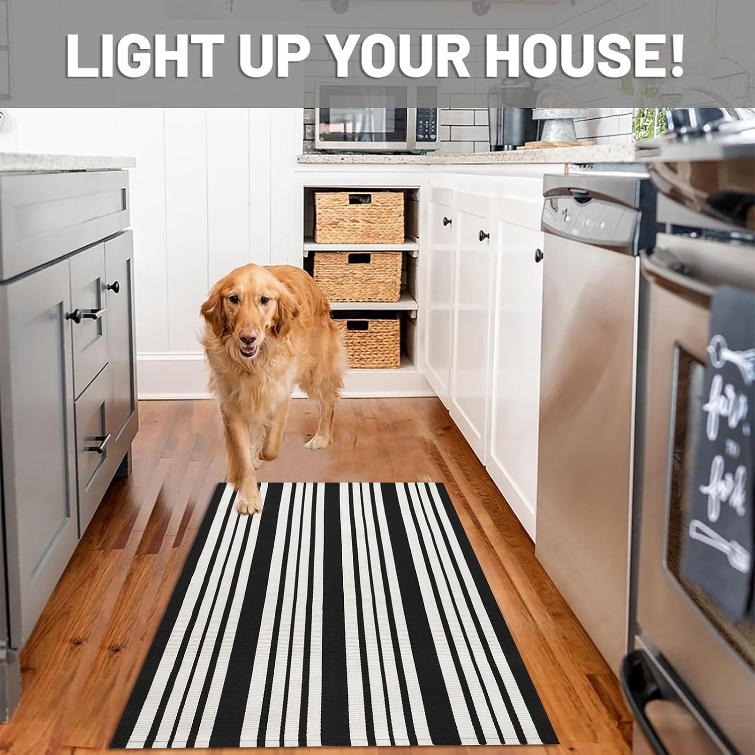 - Easy to Clean: This black and white striped rug is simple to maintain with machine wash or vacuuming to remove dirt. The rug is sturdy and can be tumble dried on low. Keep your door rug fresh and clean with minimal effort. NOTE: Cotton rugs normally shrink slightly after washing