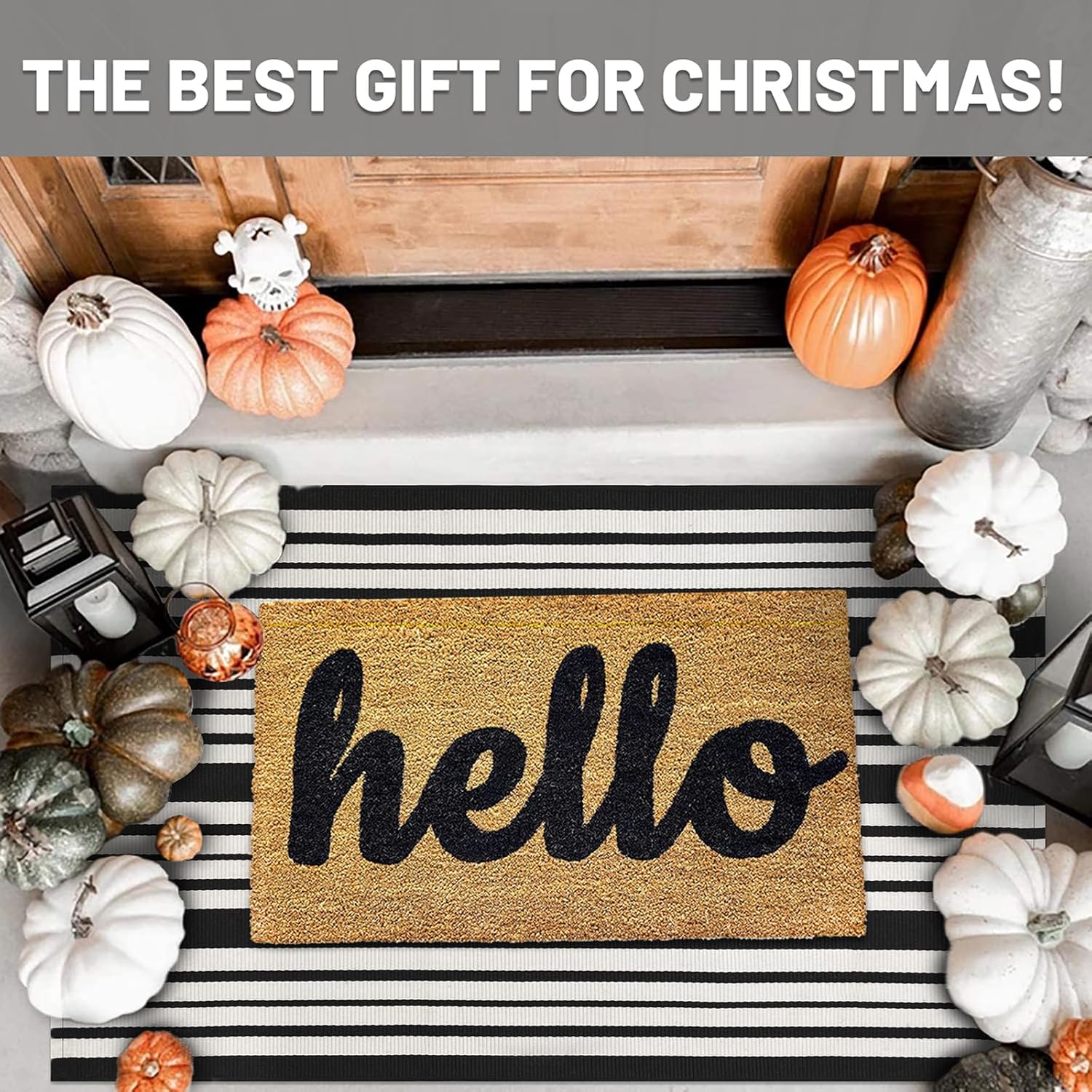 - Classic Pattern Design: Enhance your home decor with this striped indoor outdoor rug. The chic design is ideal for decorating your front porch, entryway, or living room. It also makes a thoughtful gift for Christmas, Halloween, or Thanksgiving