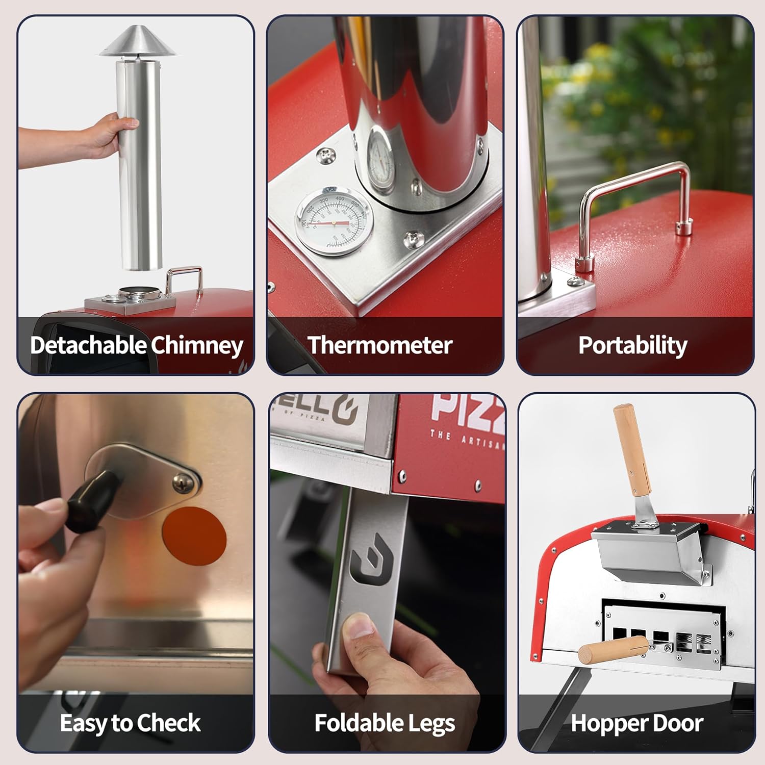 - Perfect Gifts for Family - Wood pizza Oven included removable parts: stainless steel Pizza Peel x 1, Pizza cutter x 1, cordierite 16" Pizza Stone x 1 , detachable Wood Tray x 1, waterproof Cover x 1 , Pellet Scoop x 1, You don’t need to pay extra money for these key Accessories. Brings the joy of thanksgiving home - Every household thrives on delicious pizzas! Perfect Christmas gifts for family, gather closer in the new year.