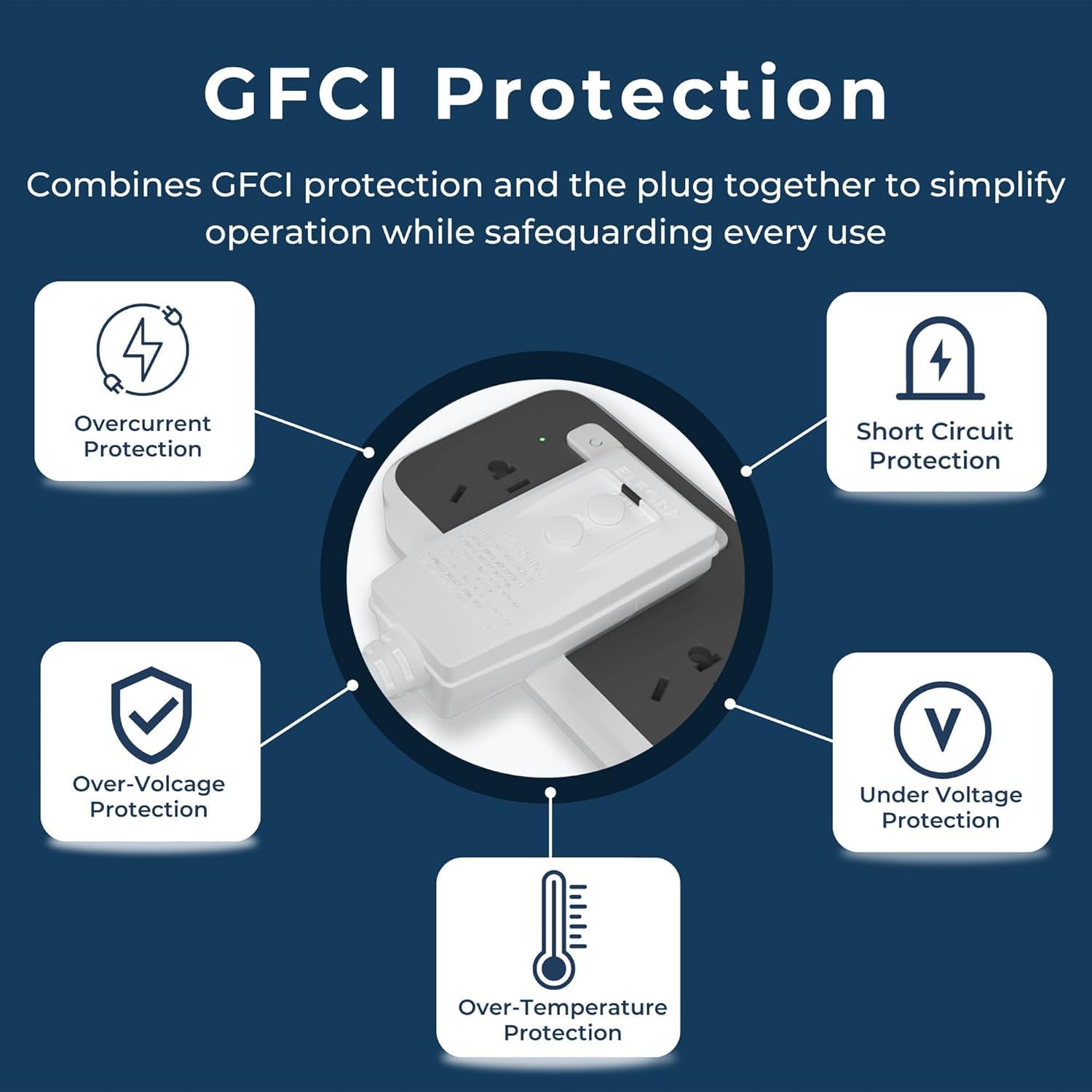 - GFCI Protection: With Ground Fault Circuit Interrupter ( GFCI ) protection to prevent overheating due to short circuits