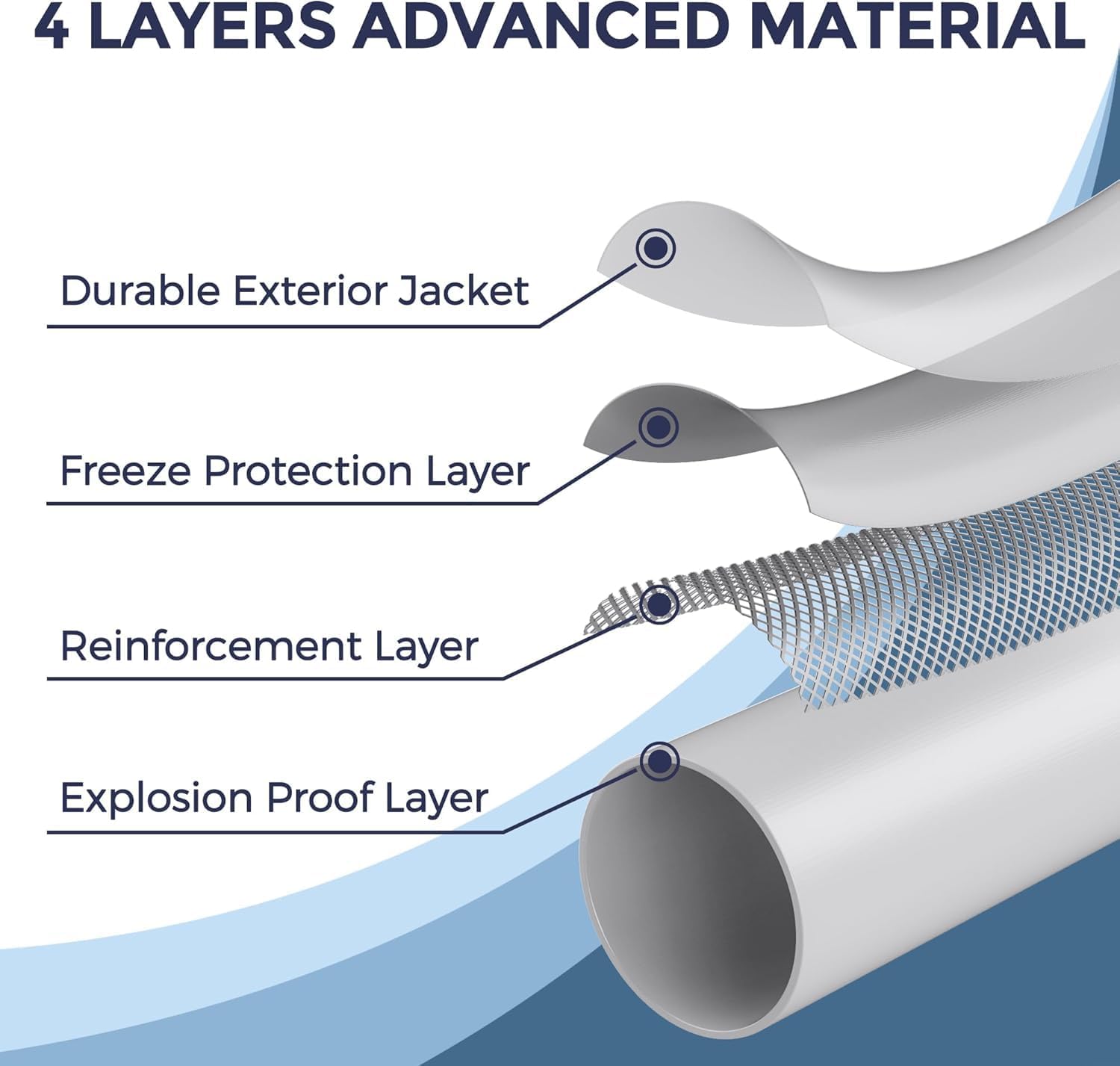 - Provides Freeze Protection: The heated water hose has adapted the self-regulating heating cable to prevent water from freezing in water pipes. freeze protection down to -20˚ F