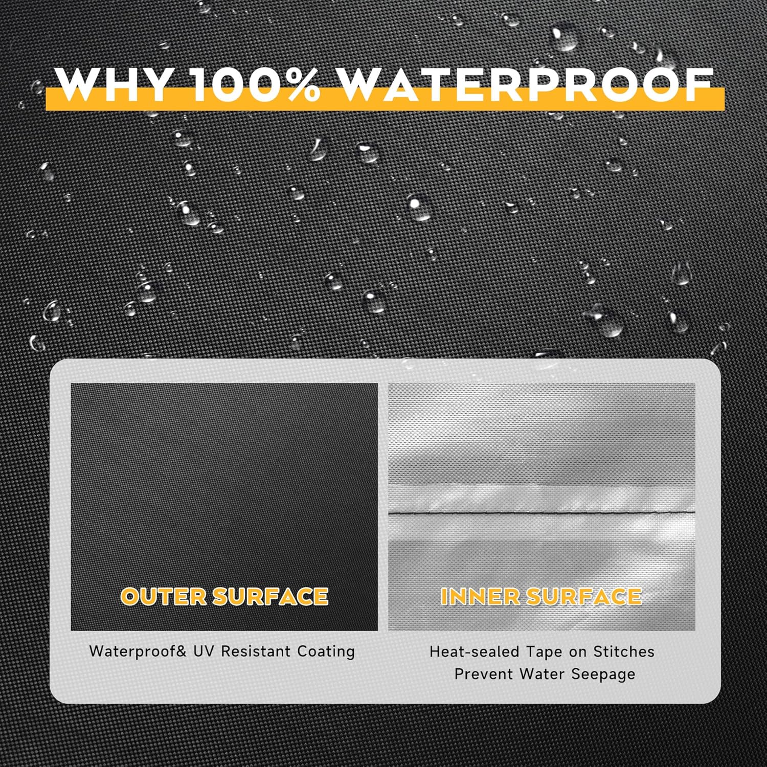 - WATERPROOF & ANTI-UV β Waterproof outer coating and heat-sealed tape on stitches prevent water seepage. Inner PU coating layer protects your outdoor bar table from damage caused by prolonged sun exposure