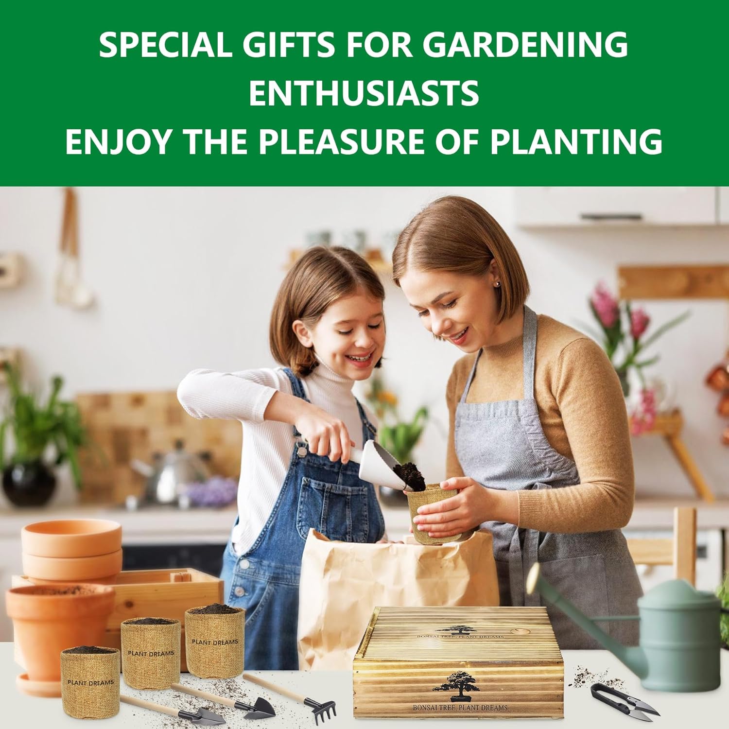 - 【Perfect for Beginners & Garden Lovers】This bonsai tree kit is an ideal starter set for beginners, kids, teens, and anyone who loves gardening. Whether you're a seasoned gardener or just starting, this DIY growing kit makes it easy to grow your own bonsai tree at home.