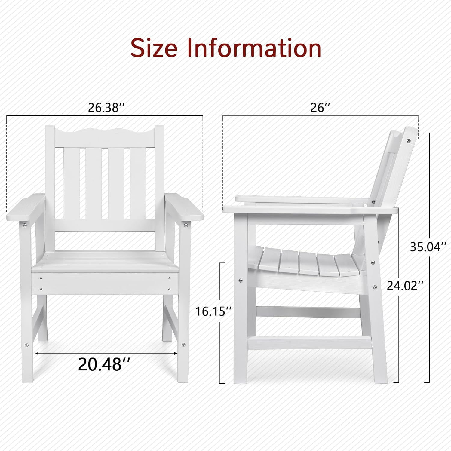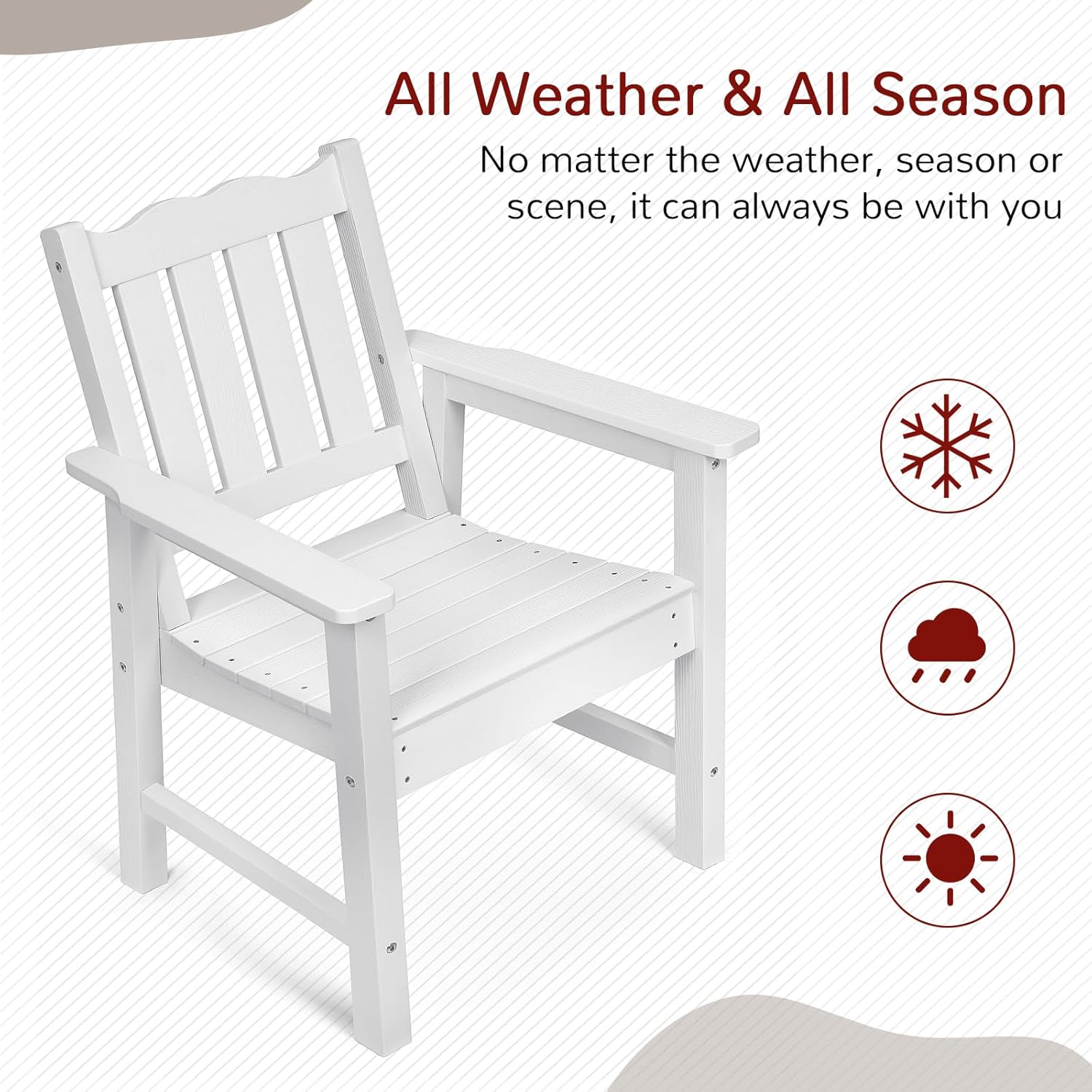 All-Weather Patio Chairs Set of 2, HIPS Outdoor Chairs with 400 lbs Weight Capacity, Patio Dining Chairs for Backyard, Deck, Garden and Porch, White