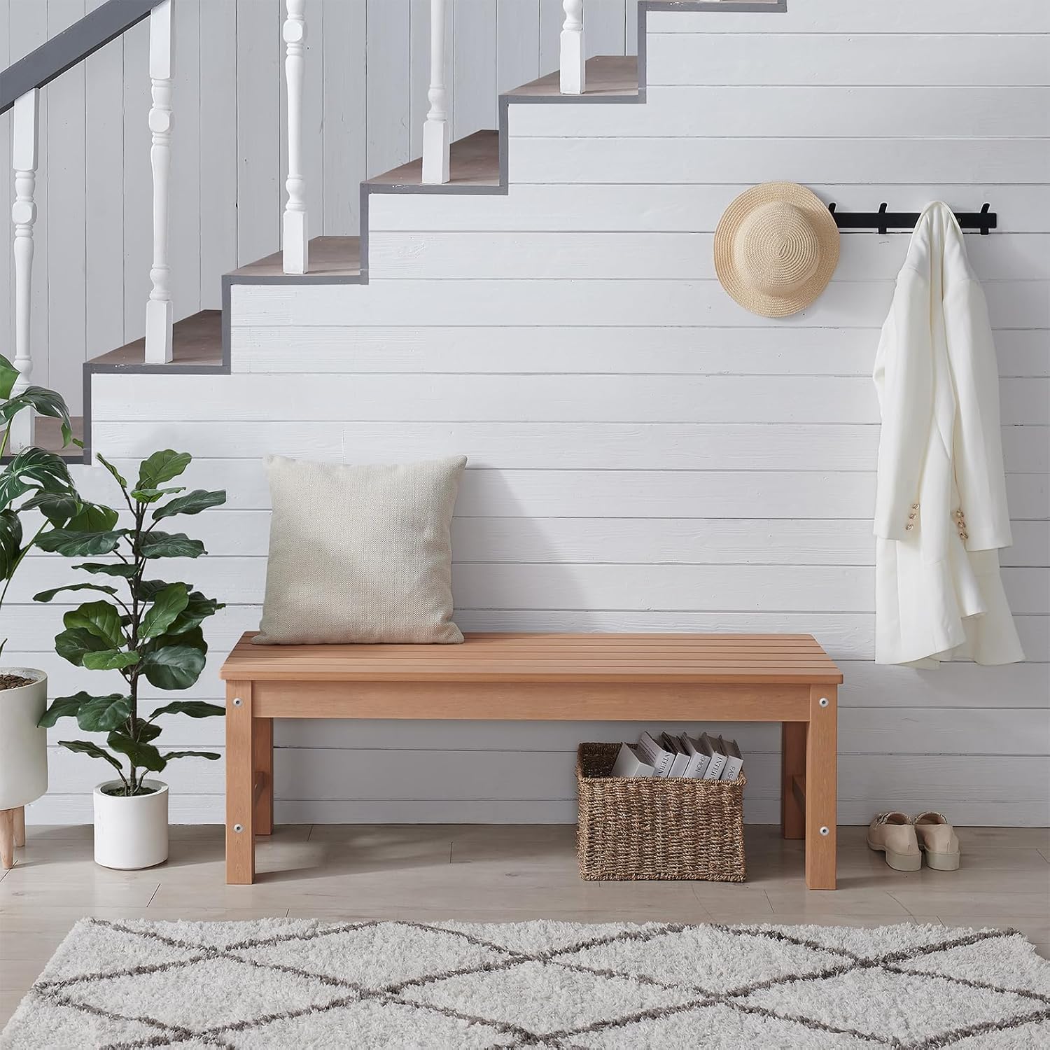 - Just Like Real Wood- Psilvam patio bench adopt unique wood-like color technology, we abandon the exaggerated wood grain of traditional poly lumber, just to show the most real and pure wood texture, it is difficult to distinguish the difference between our products and high-grade solid wood.