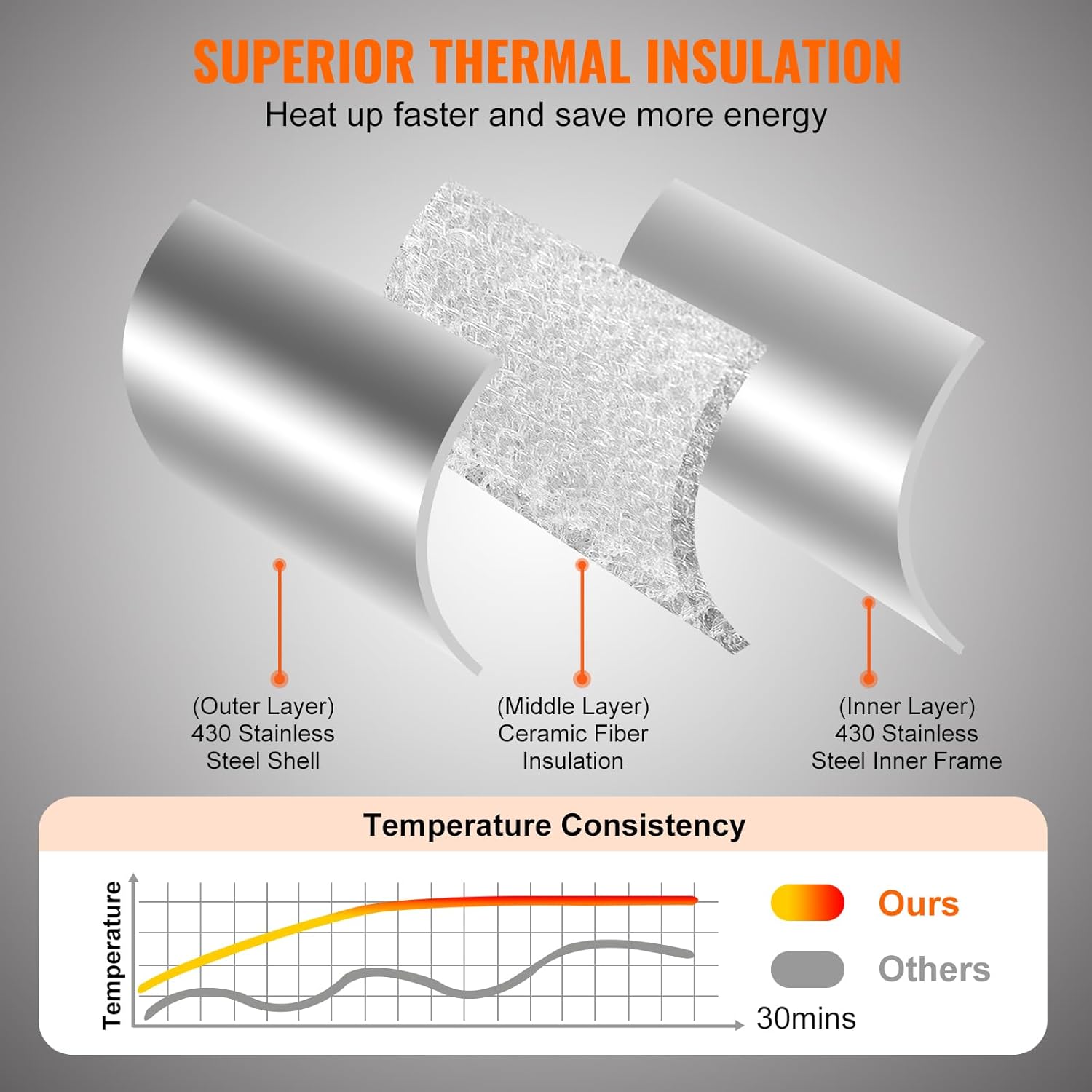 - Durable Construction: VEVOR propane pizza oven withstands outdoor conditions and frequent use. Adopted a 3-layer design, promoting efficient heat circulation. Featuring a 430 stainless steel shell, and thick insulation cotton, it ensures durability and excellent heat retention