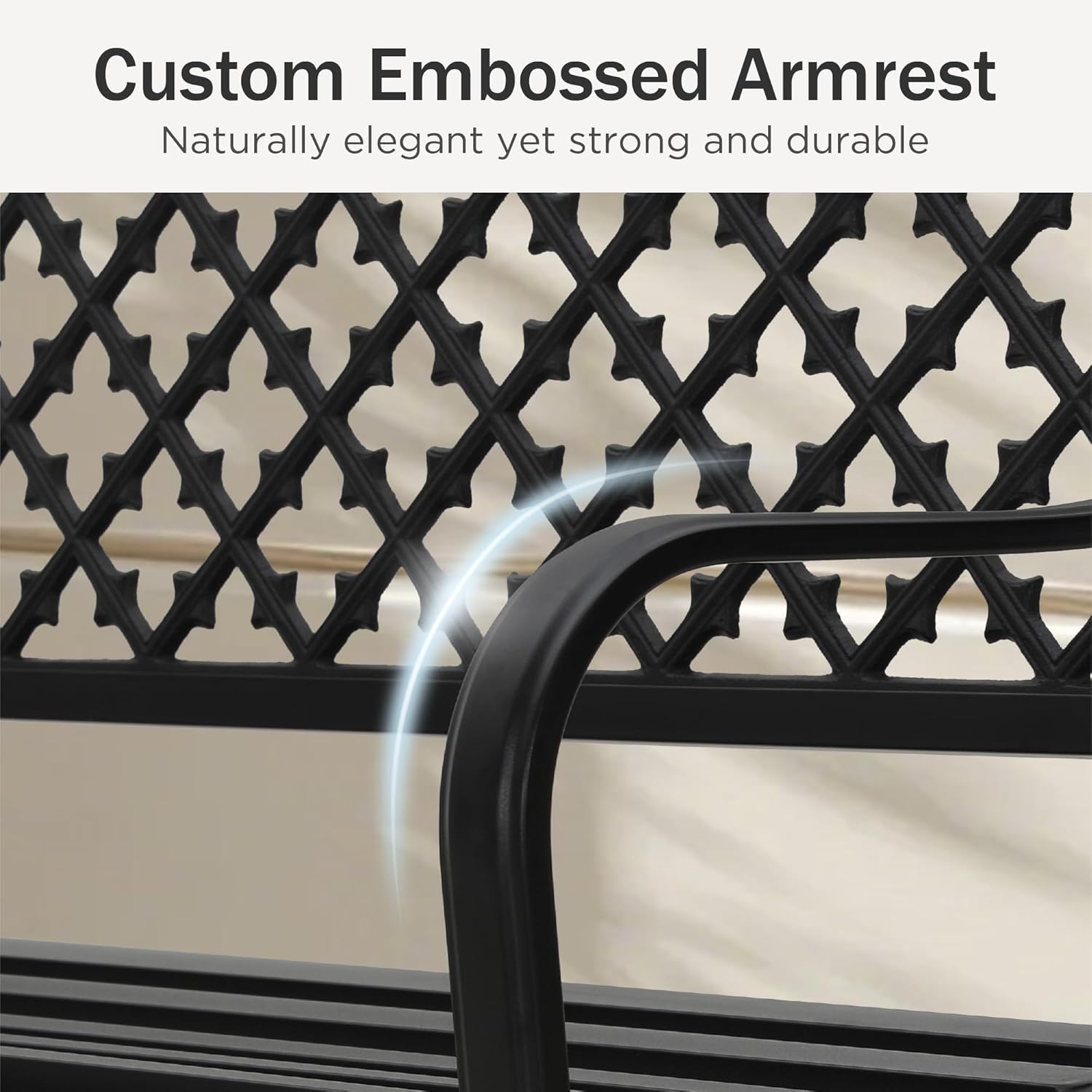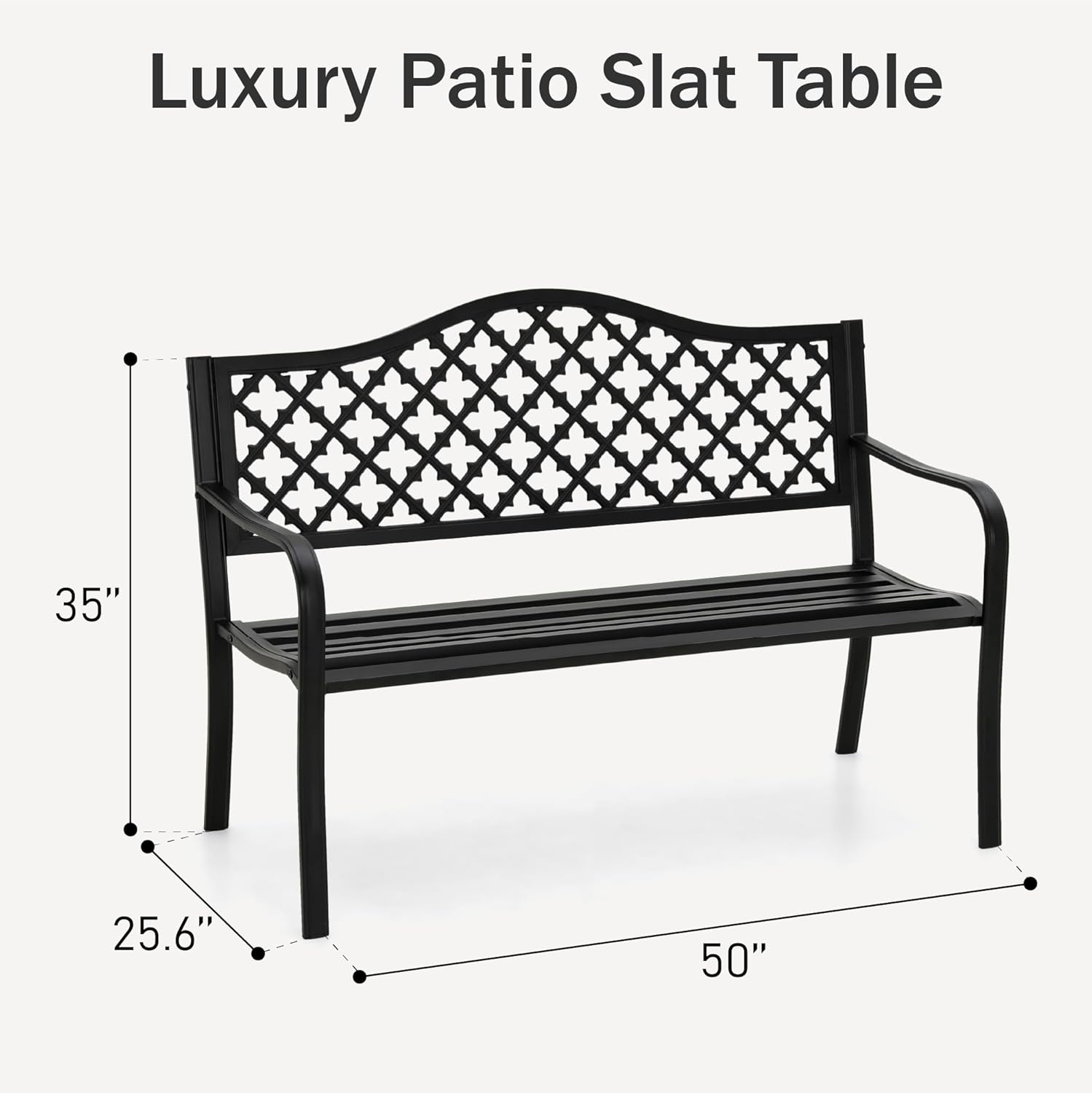 PHI VILLA 50" Outdoor Garden Patio Metal Bench for Outdoors with Plastic Backrest Armrests Sturdy Steel Frame, Black