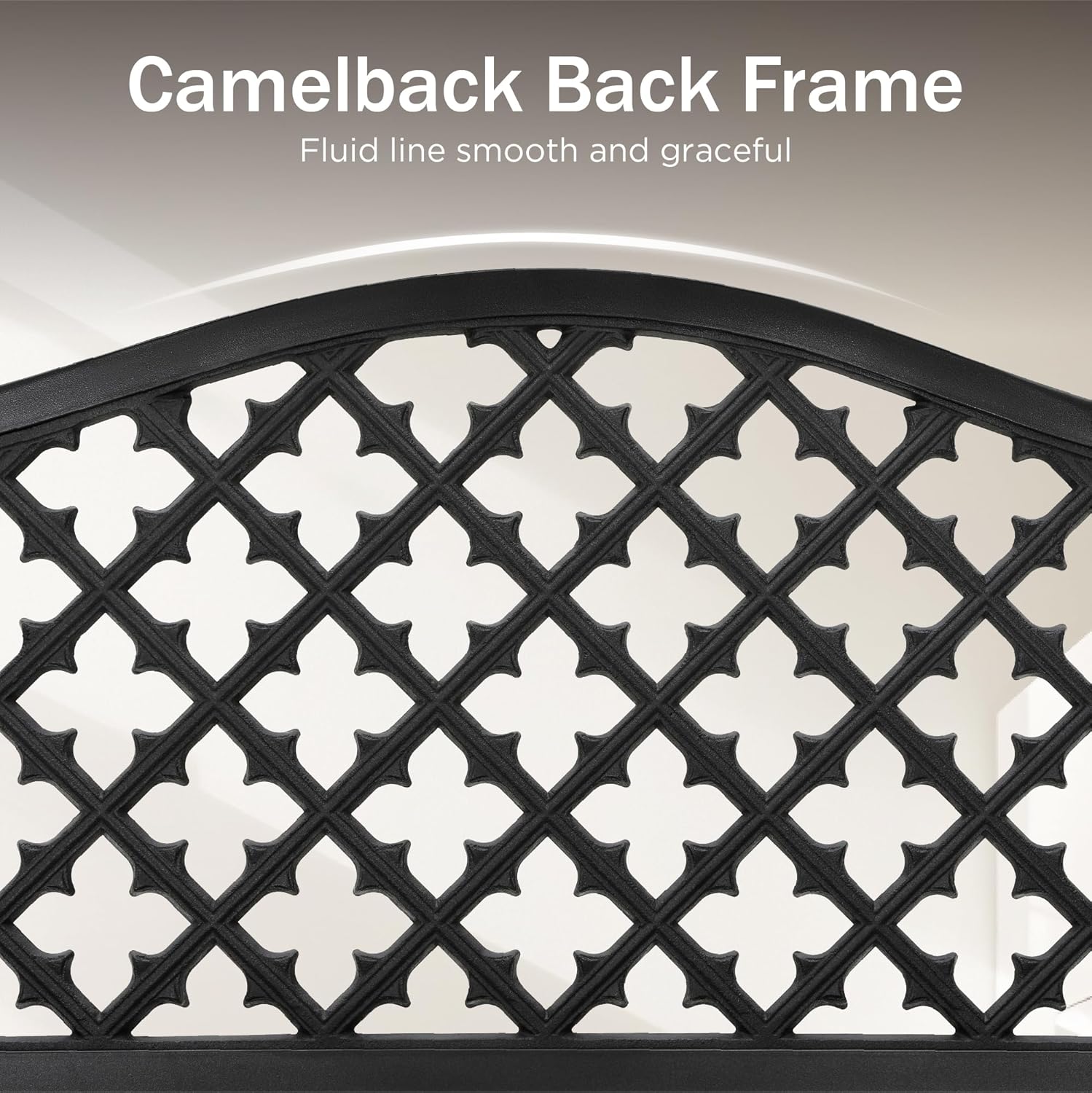 - 【Excellent Design & Perfect Size】The lively and exquisite grid embellishments of the Garden Bench are distributed on backrest fashionable plastic backrest and make whole Metal Bench look beautiful. Not only does the Yard Bench offer comfortable sitting experience but also serve as a good decorative ornament. And the garden bench size perfect for two adults.