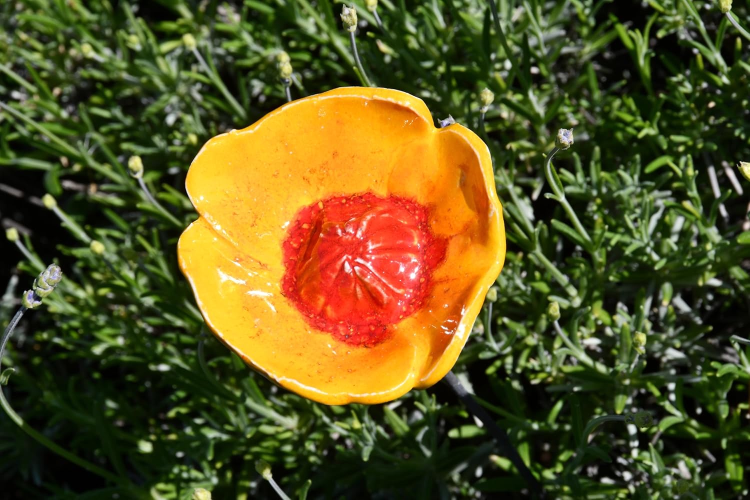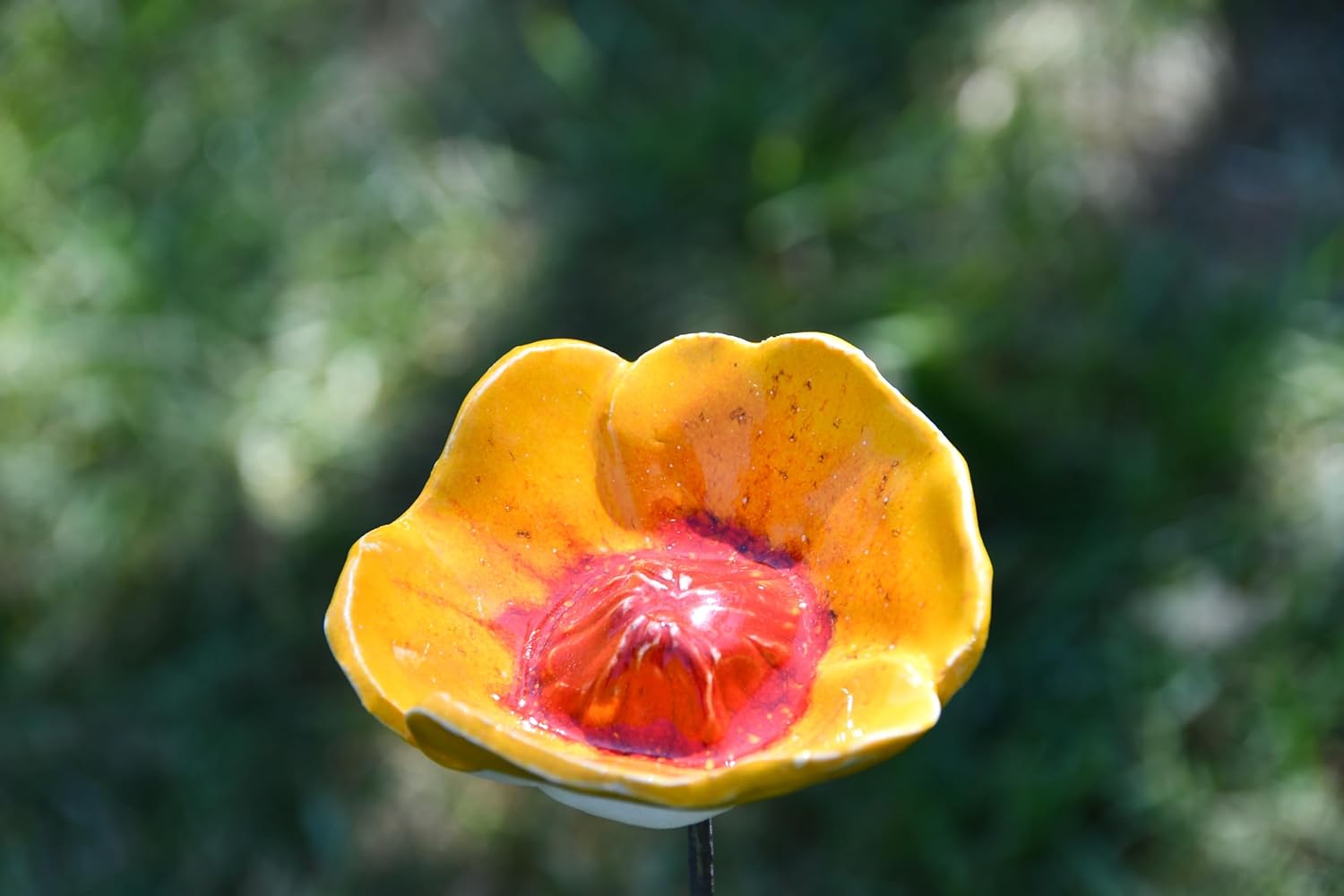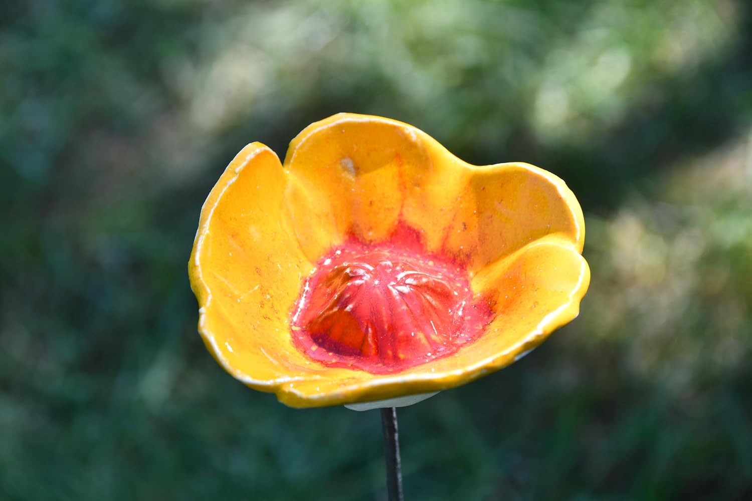 Ceramic Garden Decor - Flower Lawn Stake - Outdoor Statue - Perfect, Unique Gifts for Gardeners Woman, Men, Yard Gifts - Handmade, Frostproof