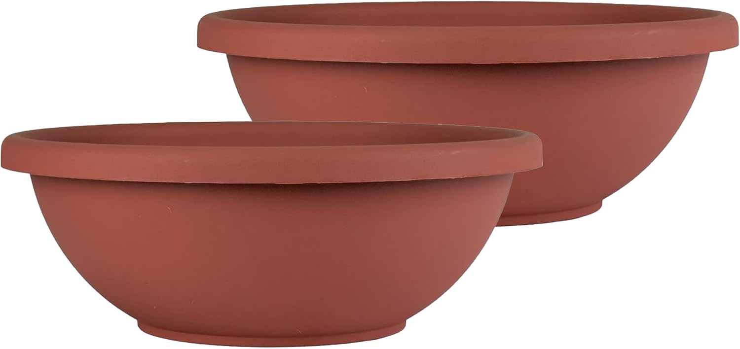 The HC Companies Shallow Planter with Drainage - Contemporary Garden Bowl Planter for Flowers, Herbs & More - Round Succulent Planter Pot for Indoors and Outdoors (20" Clay, Pack of 2)