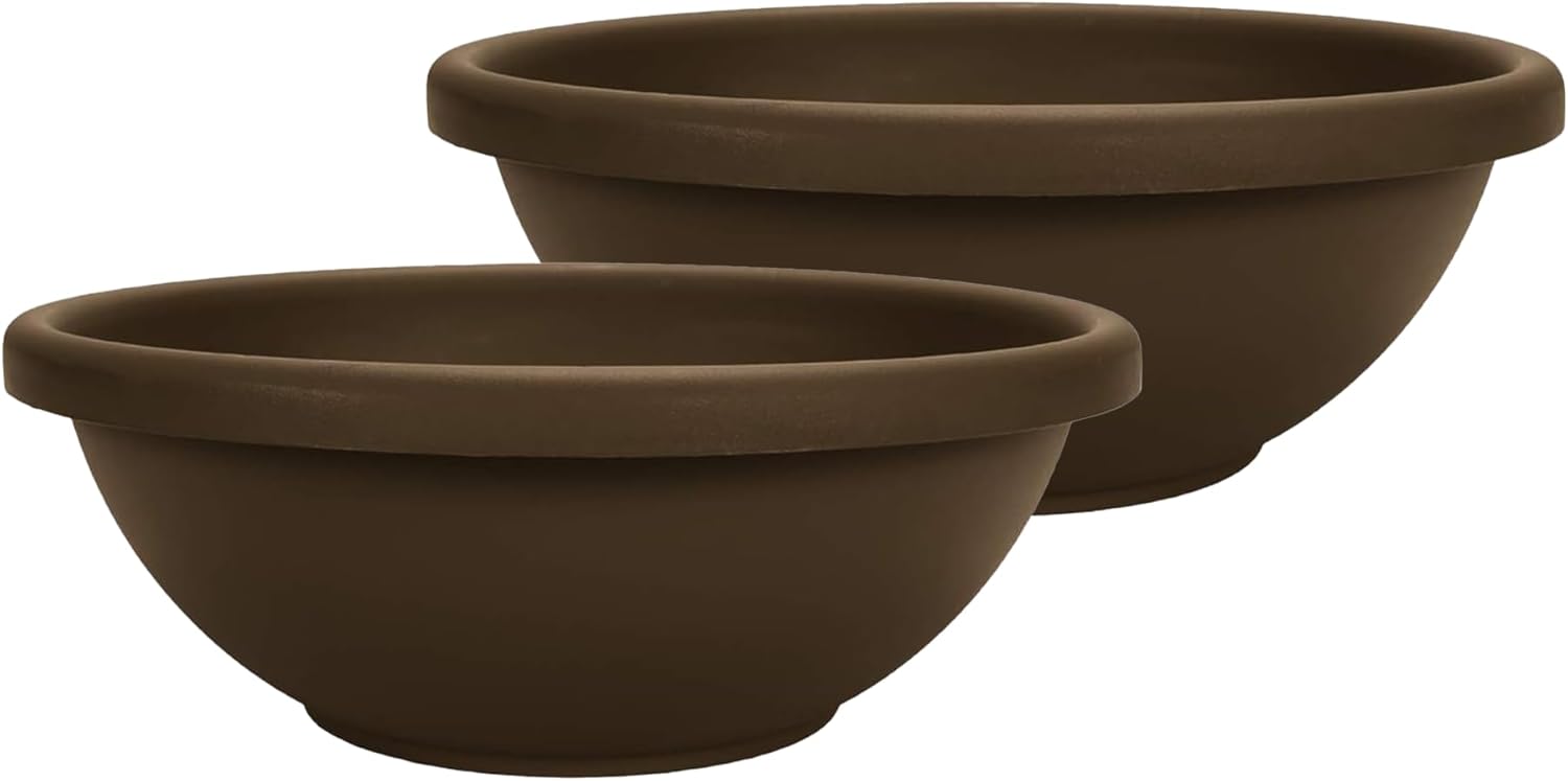 The HC Companies Shallow Planter with Drainage - Contemporary Garden Bowl Planter for Flowers, Herbs & More - Round Succulent Planter Pot for Indoors and Outdoors (20" Chocolate, Pack of 2)