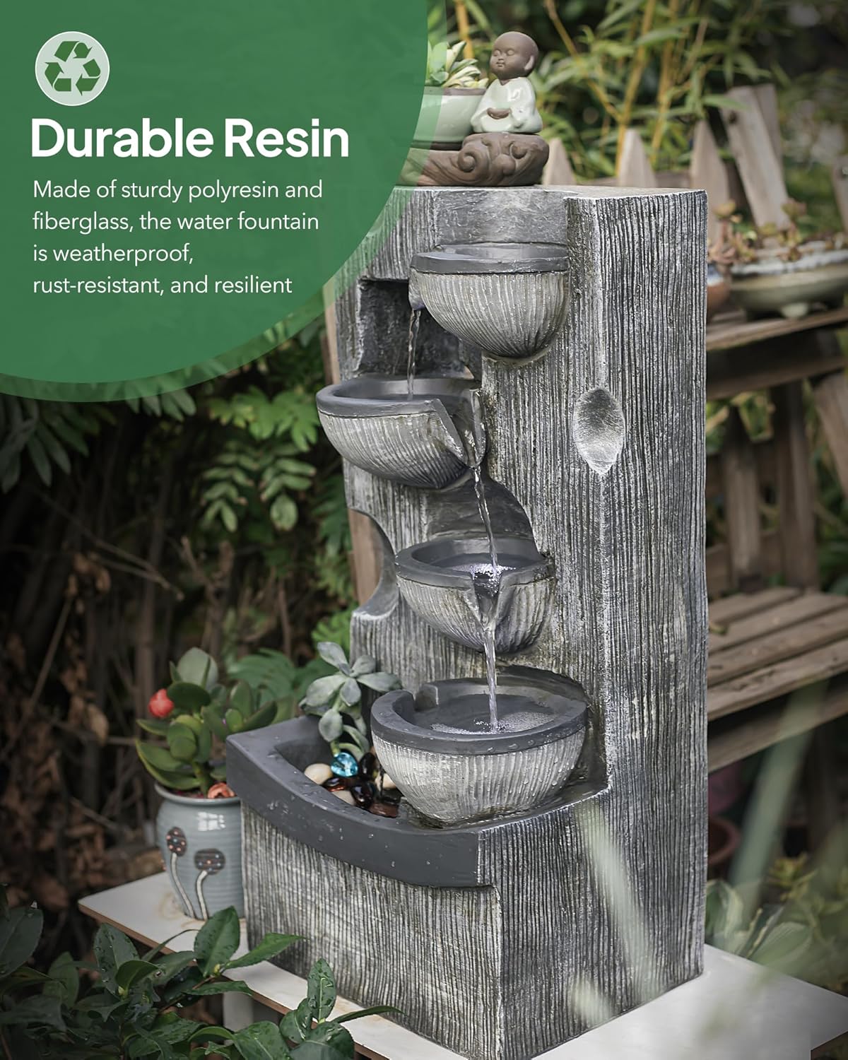 - 【Durability】This outdoor fountain is made of durable resin with a natural look, realistic texture, very lightweight, weather and rust resistant, sturdy, and durable.