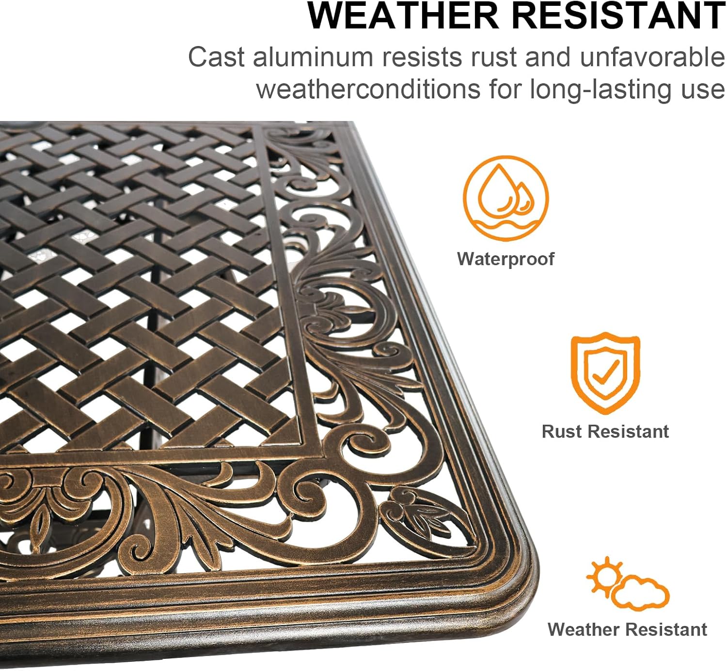 - ăDurable Legs and Stylish Table Topă Sturdy cast aluminum legs ensure stability for long term use, elegant design makes the furniture look more premium. Featuring cast aluminum metal construction, the four separate legs provide you with a stable and reliable use experience, preventing it from tilting or leaning for longer service life.