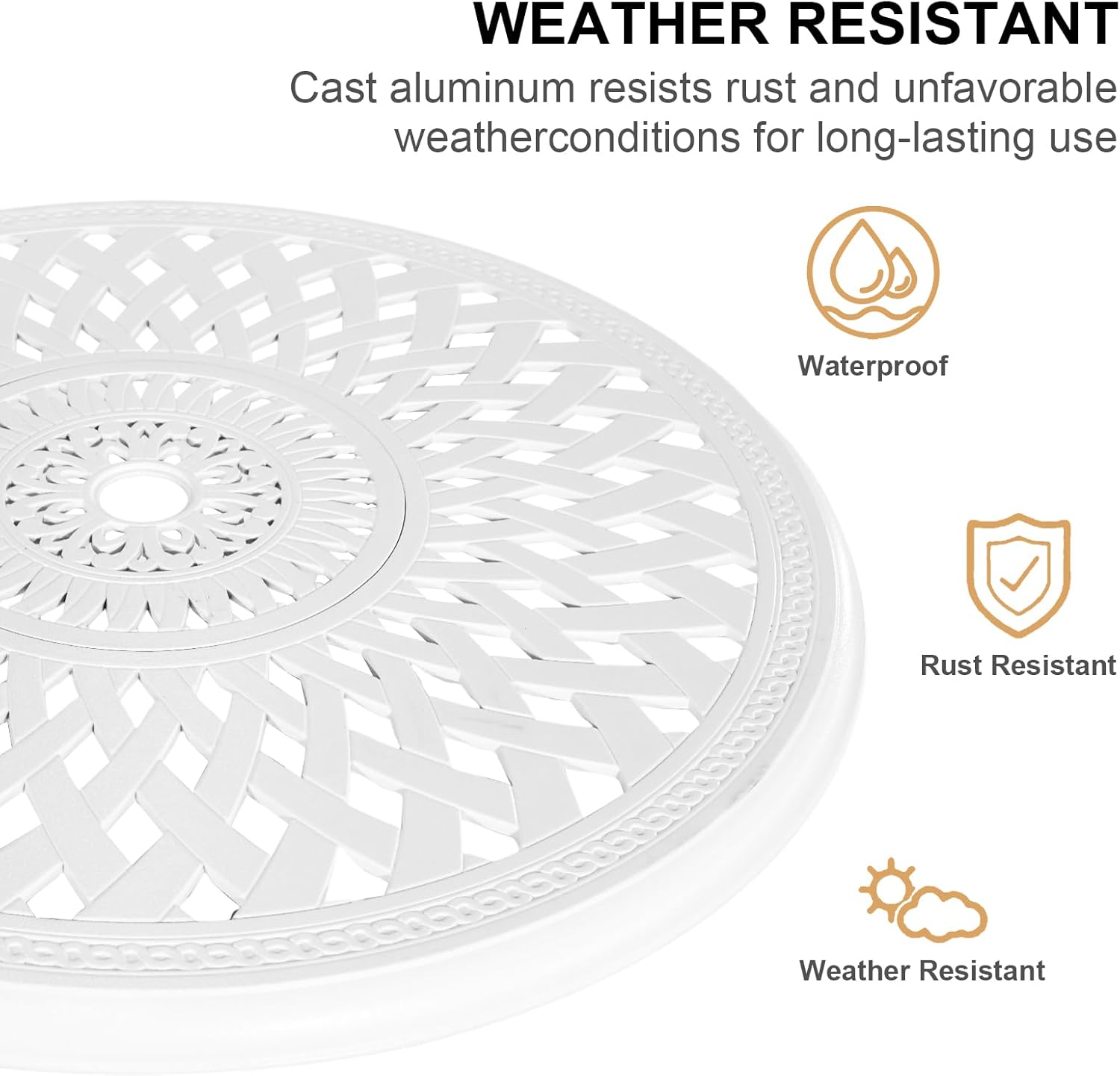 30 inches Patio Table with Umbrella Hole, Round Cast Aluminum Bistro Table for Porch Backyard, White