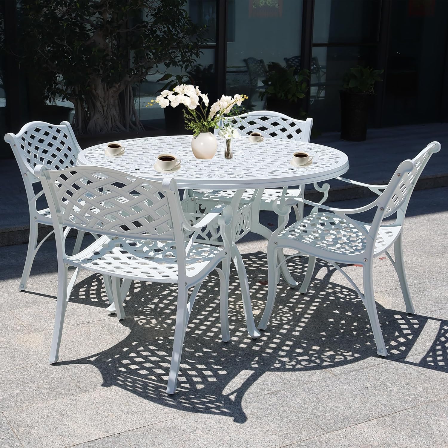 48" Round Patio Table for 6-8 Person Cast Aluminum Bistro Table with 2.36" Umbrella Hole,Metal Outdoor Dining Tables,Wrought Iron Patio Bistro Table,White Patio Table.