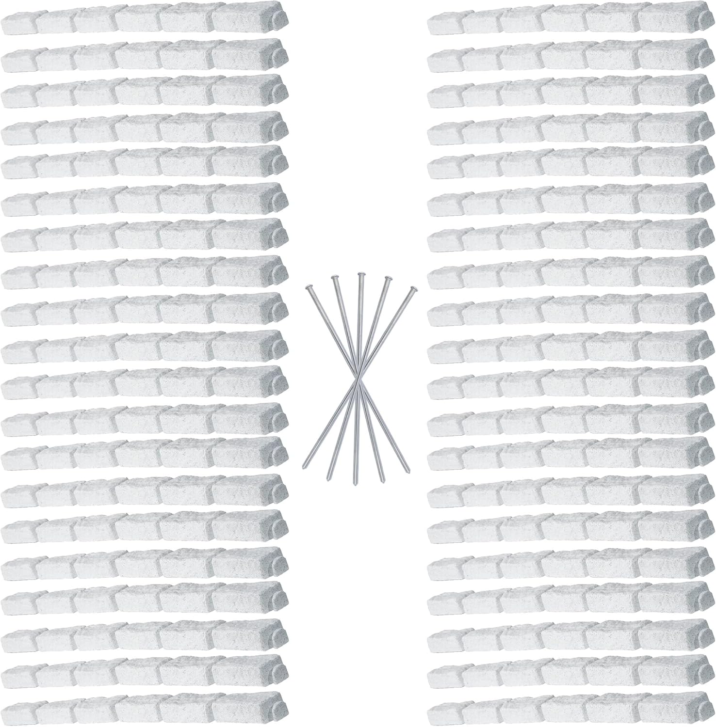 Beuta Landscape Edging | Garden Edging Border | Faux Stone Bricks for Lawn edging, Flower beds, Pathways & Yard Edging– 40 Packs | Each Section Has 6 Bricks 48"L x 4"W x 2.25"H | 120 Spikes |Limewash