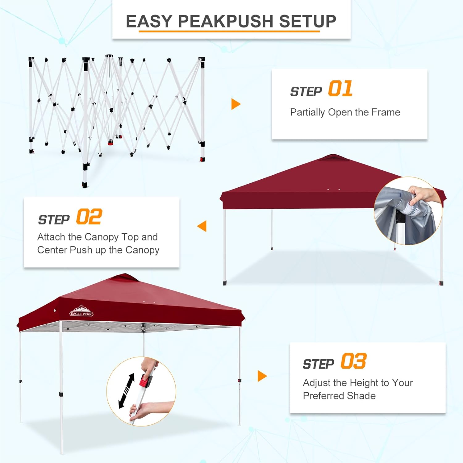 EAGLE PEAK Pop Up Canopy Tent with Wheeled Carry Bag, 8 Stakes, 4 Ropes, 4 Weight Bags, Easy Set Up Tent Canopy, 12x12 ft, 144sqft of Shade, Burgundy