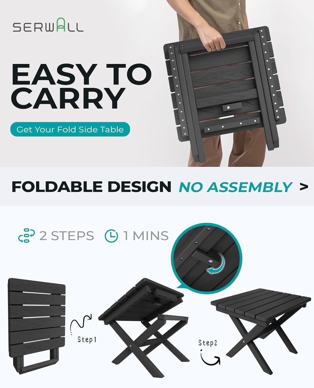 - [Ready-to-Use Convenience] Unbox your SERWALL Adirondack Side Table and enjoy immediate functionality. This folding end table is designed for hassle-free setup, perfect for those seeking a no-assembly-required experience.