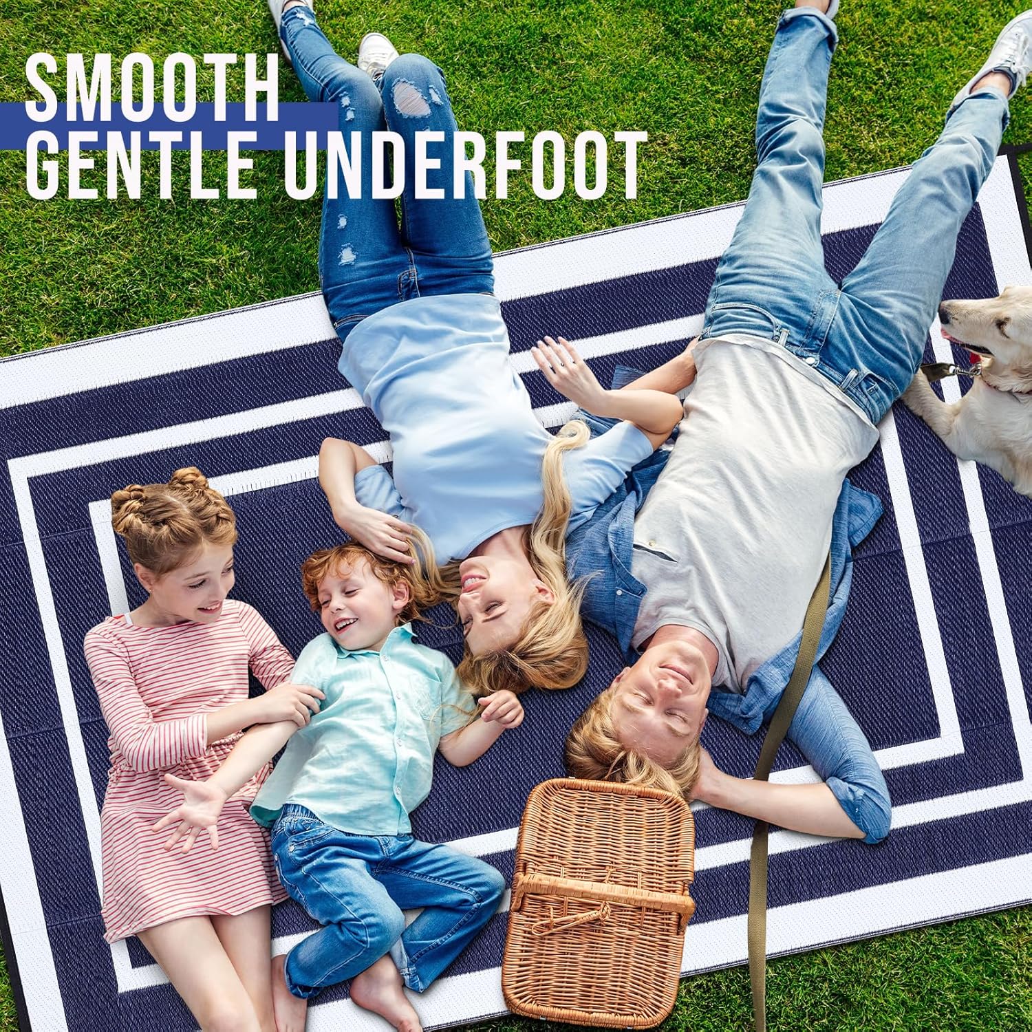 - Reversible & Versatile: Instantly refresh your space with a simple flip. This reversible patio rug adds function and style to balconies, patios, picnics, and kids' play areas. Made from lightweight plastic material, it works well for both indoor and outdoor use—including camping or temporary setups.