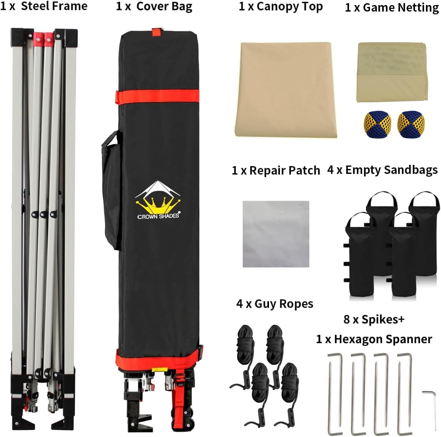 CROWN SHADES 10x10 Pop Up Canopy Tent with Game Netting - Beach Tent with One Push Setup - Outdoor Sun Shade for Events, Parties, Camping with STO-N-Go Cover Bag, Silver Coated Top, Khaki