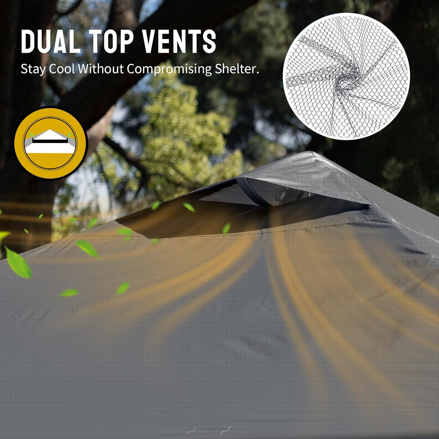 - Spacious Shelter: Measuring an ample 12x12 feet with a 144 square feet canopy footprint, our tent provides a generous area of shade, allowing over 9 feet of interior height and 6.3 feet of clearance under the valance for comfort and movement.