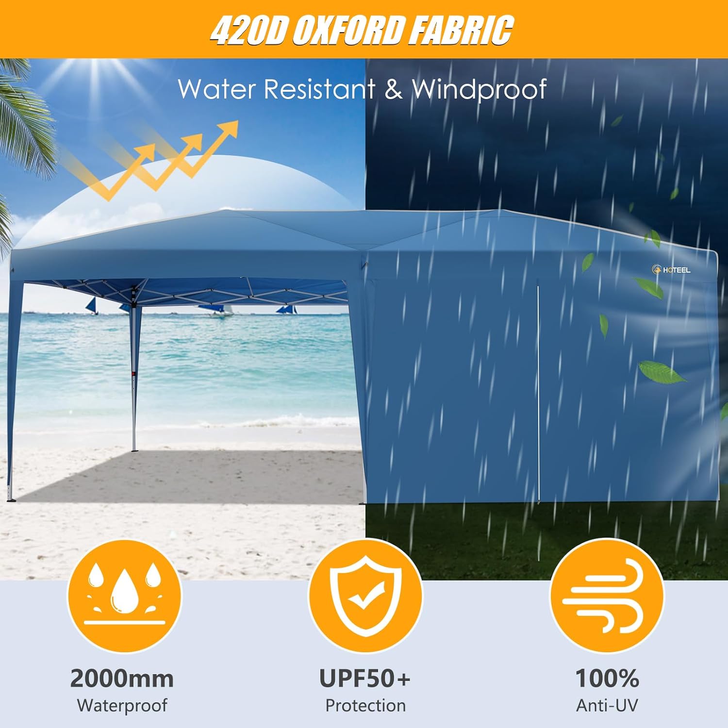 HOTEEL 10x20 Pop up Canopy with 6 Sidewalls, One Push Instant Setup Outdoor Canopy Tent with Reinforce Rod, Weight Bag, for Parties, Events, Blue