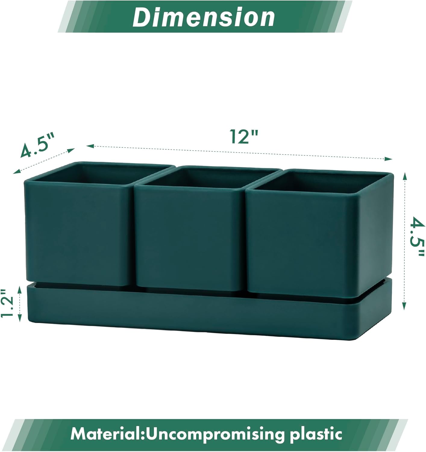 D'vine Dev Herb Garden Planter Set, Plastic Plant Pots with Drainage and Saucer, Indoor Succulent Cactus Vegetable Pot for Windowsill, Garden Balcony, Green, Set of 2, 76-V-C-2