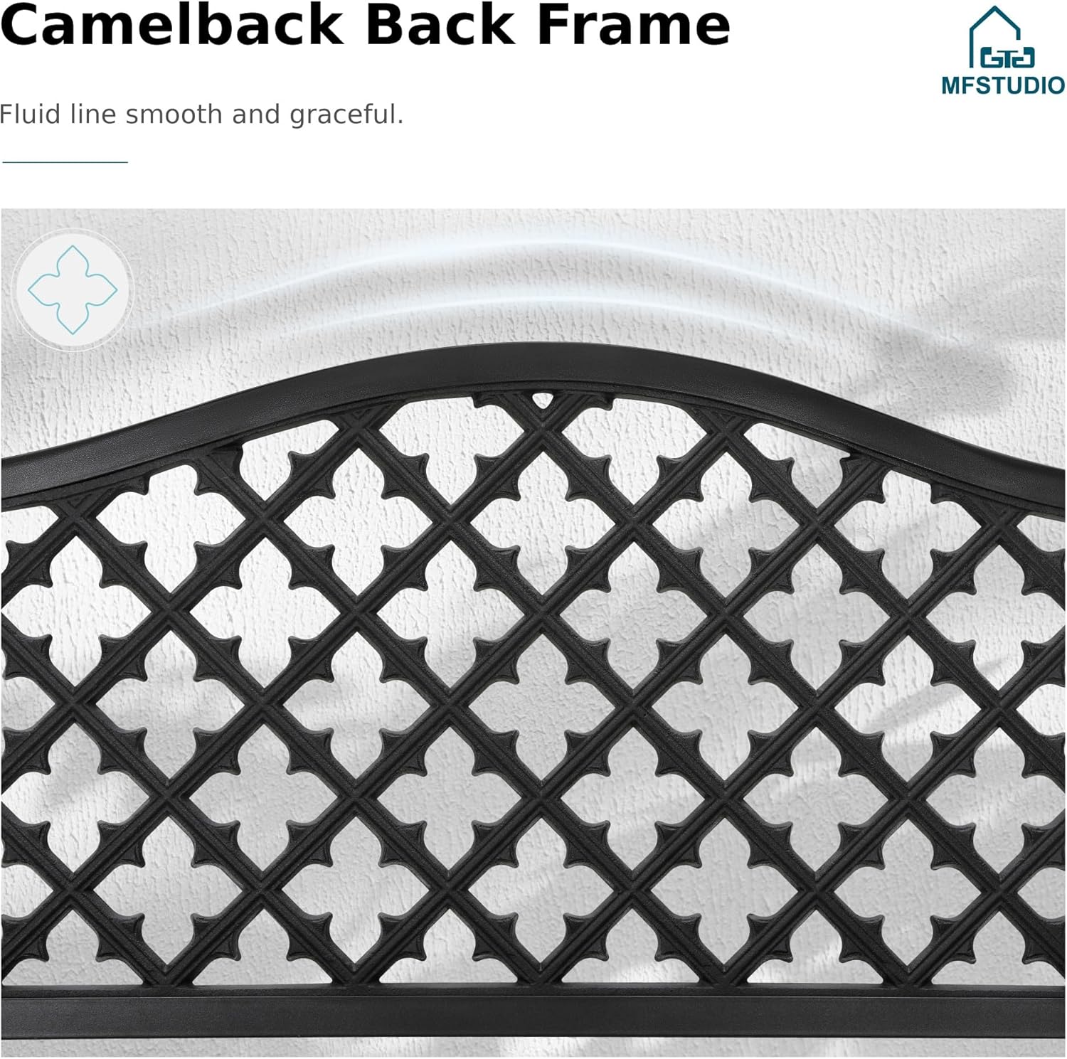 MFSTUDIO 50" Black Outdoor Metal Garden Bench with Arch Legs, Cast Iron Frame Patio Furniture with E-Coating, Perfect for Porch and Yard