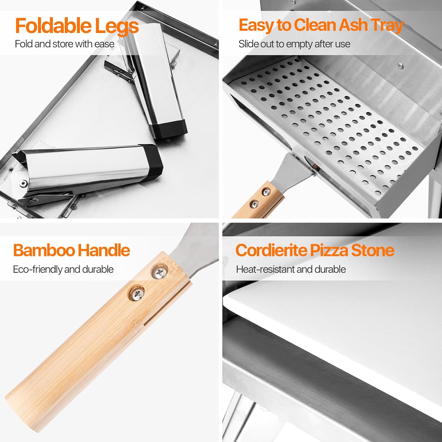 - Ultra-Portable & Ease of Assembly:The portable pizza oven is lightweight and durable with folding legs for simple assembly, no tools needed, quick disassembly and assembly for easy cleaning and storage, and weighs only 35 pounds, so you can have your own handmade, delicious pizzas anytime, anywhere, ideal for backyard or outdoor cooking events