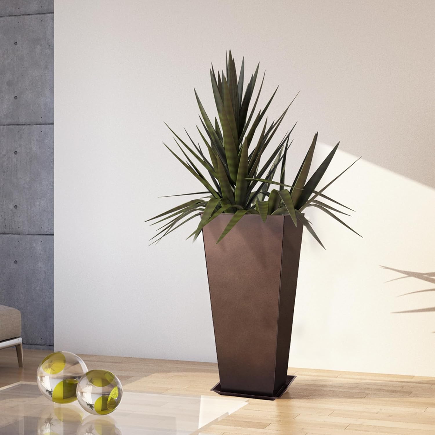 KOL 25''H. Tall Galvanized Steel Planter with Saucer, Set of 2, Planter Pots with Drainage Hole for Indoor & Outdoor Use, Decorative Flower Plant Pots for Front Porch, Patio, Deck - Rust Color