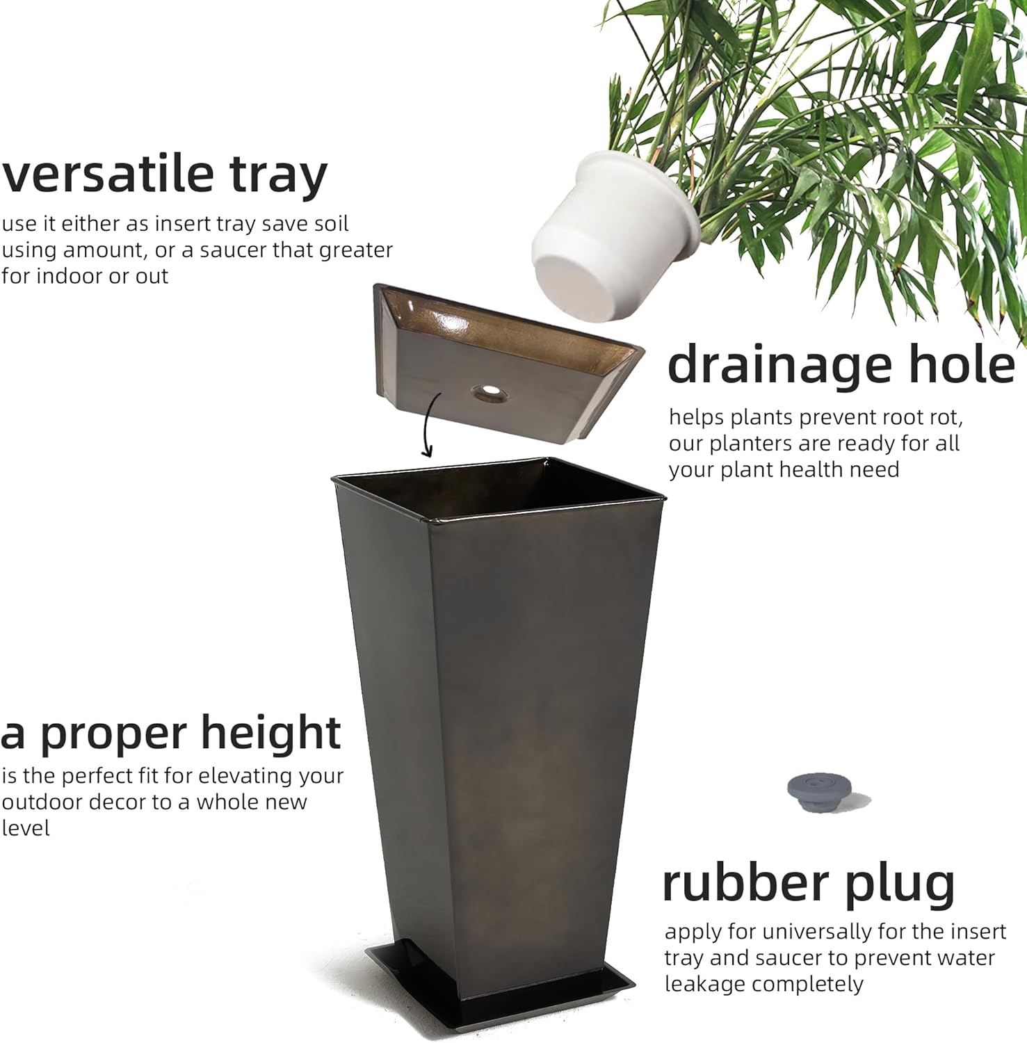 - Dual Purpose Insert: The insert tray can be used as saucer to collect excess water; And each planter comes with a pre-drilled drainage hole, allowing excess water to drain and preventing root rot