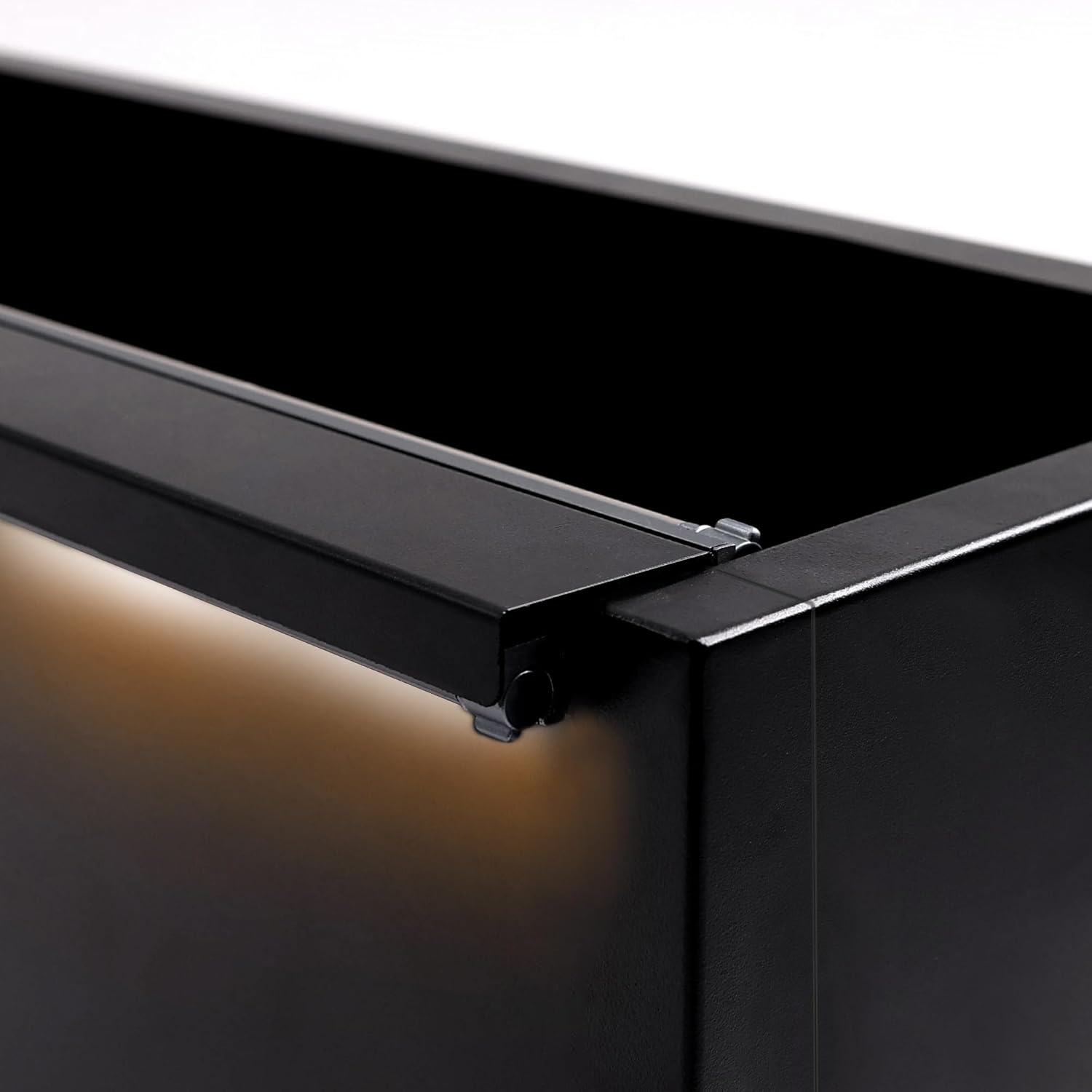 GSK Light Metal Planter Boxes LED Lighting Strips × 2 Outdoor Black Rectangle Flower Trough Heavy Duty Galvanized Iron Raised Tall Garden Bed Indoor Divider Shelf for Plants and Space Dividing