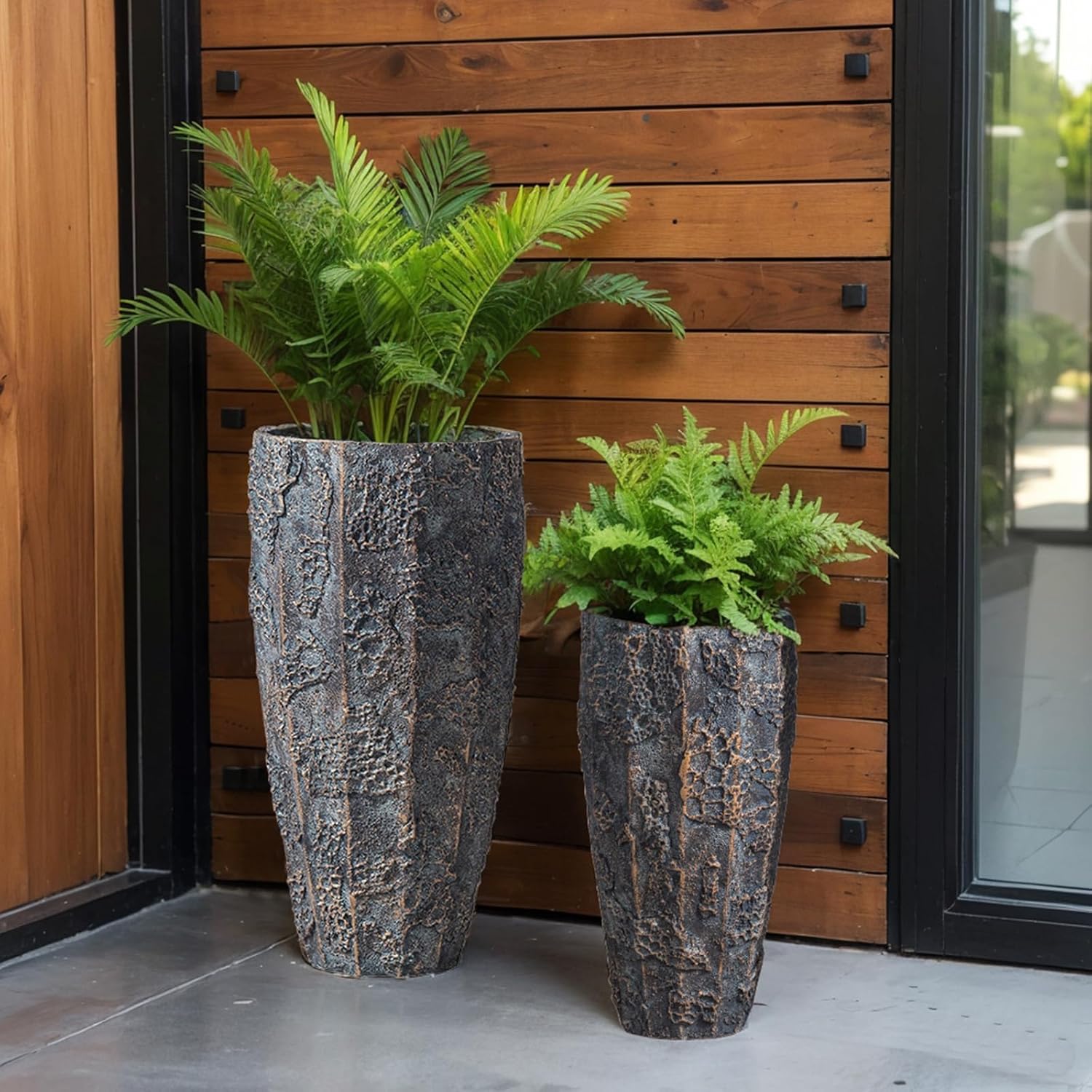 - [Just the right size]:These modern planters sets are 17.32 and 22.04 inches high and 8.66 and 11.02 inches in diameter respectively,and can be used both indoors and outdoors