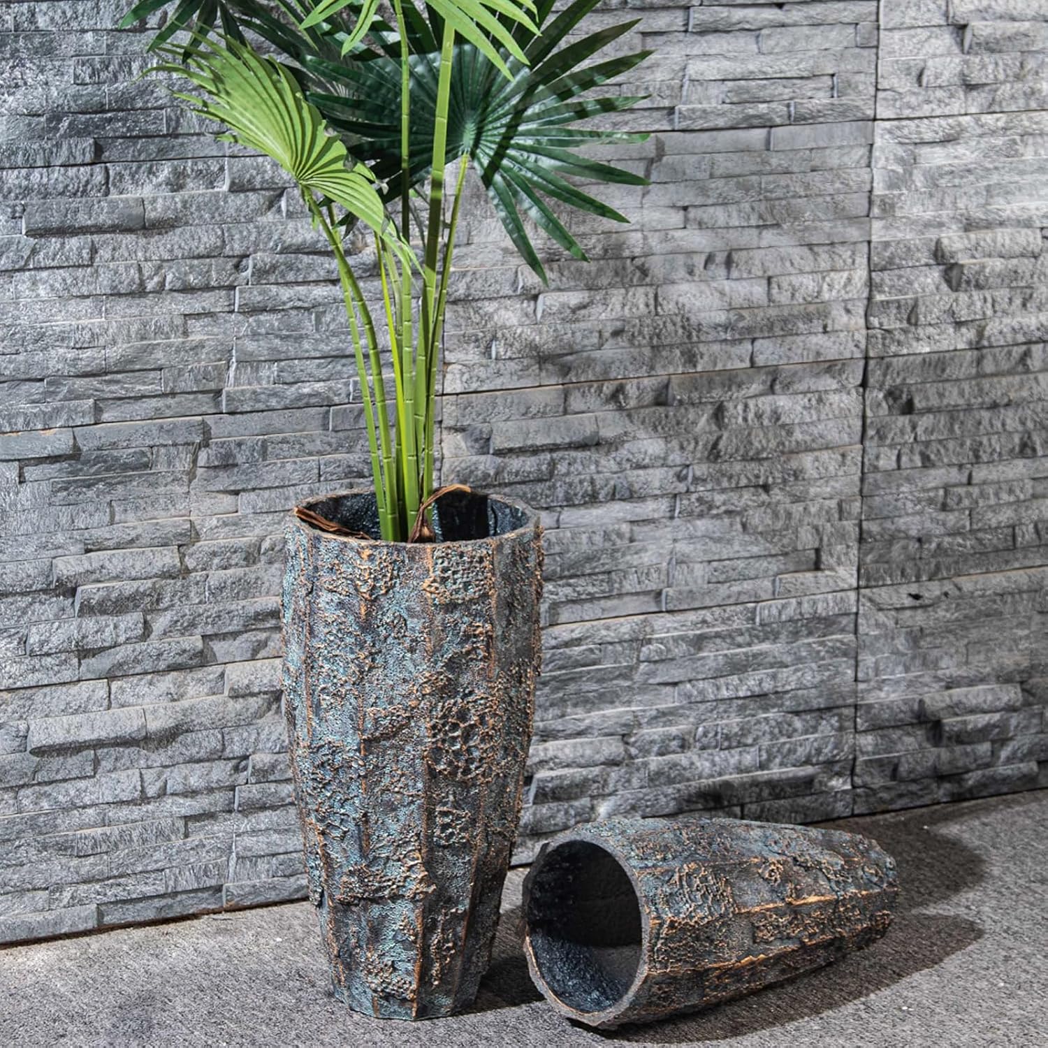 Yundu 17 & 22 inch high Concrete Plant pots Set of 2. Flower pots with Drainage Hole. Tall planters for Indoor Plants, Large planters for Outdoor Plants, Such as Garden, Patio and Front Porch Decor.